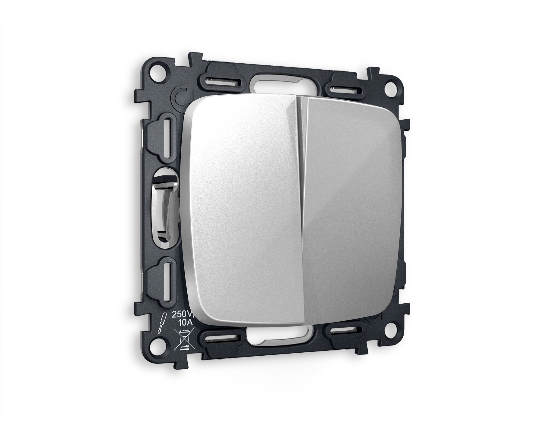 Комплект механизма 2-клавишного проходного выключателя OMEGA MO403020 Серебро глянец QUANT. Многогранный ассортимент Ambrella Volt включает в себя механизмы, лицевые панели и рамки, а также комплекты, доступные в различных цветовых решениях. Продукция представлена в модульном исполнении, что позволяет гибко настраивать внешнийвид и функциональность. Вам будет легко заменить лицевую панель, рамку или механизм, найдя идеальное сочетание цветов.