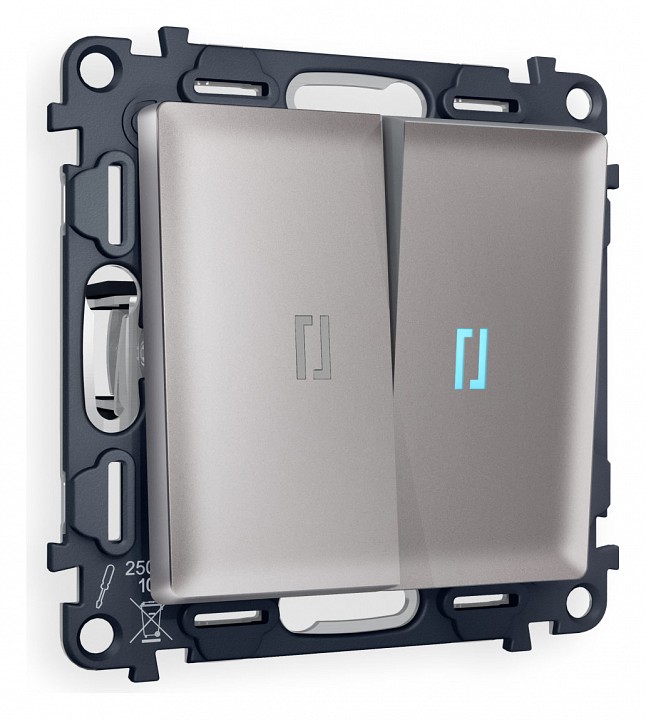 Комплект механизма 2-клавишного проходного выключателя с подсветкой 10000K ALFA MA504040 Сталь матовый QUANT. Многогранный ассортимент Ambrella Volt включает в себя механизмы, лицевые панели и рамки, а также комплекты, доступные в различных цветовых решениях. Продукция представлена в модульном исполнении, что позволяет гибко настраивать внешнийвид и функциональность. Вам будет легко заменить лицевую панель, рамку или механизм, найдя идеальное сочетание цветов.