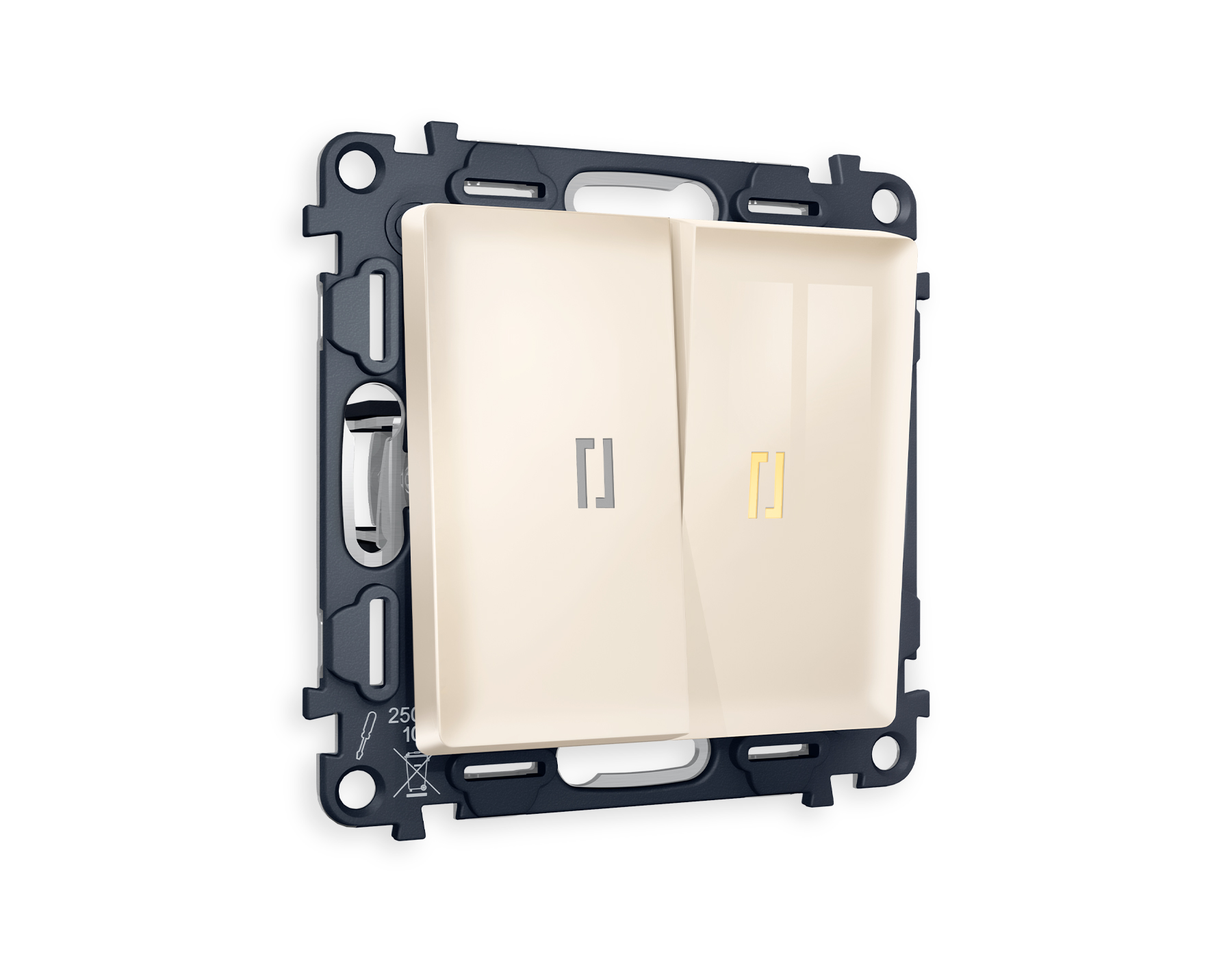 Комплект механизма 2-клавишного проходного выключателя с подсветкой 3200K ALFA MA304030 Бежевый глянец QUANT. Многогранный ассортимент Ambrella Volt включает в себя механизмы, лицевые панели и рамки, а также комплекты, доступные в различных цветовых решениях. Продукция представлена в модульном исполнении, что позволяет гибко настраивать внешнийвид и функциональность. Вам будет легко заменить лицевую панель, рамку или механизм, найдя идеальное сочетание цветов.