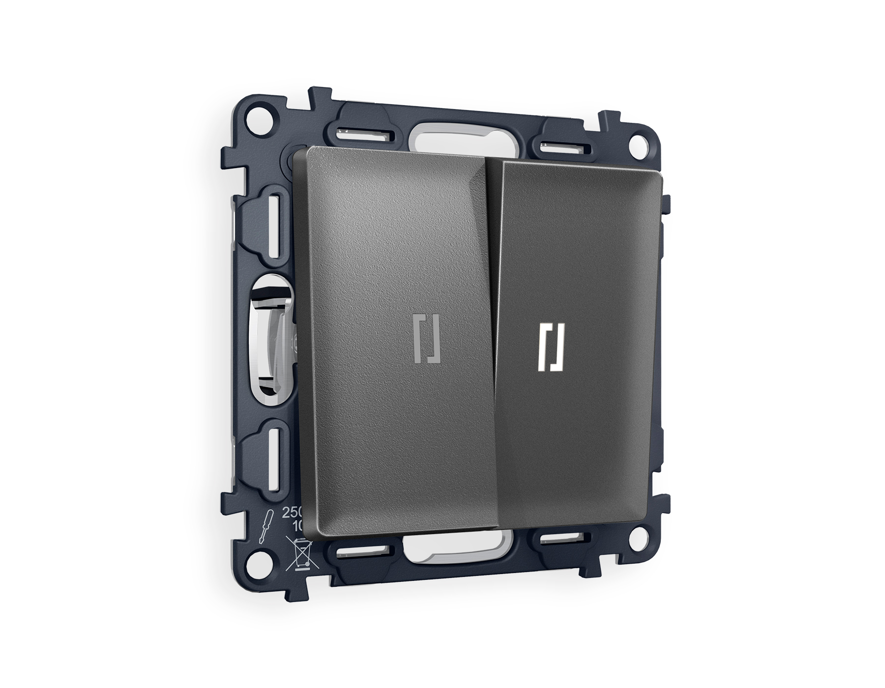 Комплект механизма 2-клавишного проходного выключателя с подсветкой 5600K ALFA MA654035 Антрацит серый QUANT. Многогранный ассортимент Ambrella Volt включает в себя механизмы, лицевые панели и рамки, а также комплекты, доступные в различных цветовых решениях. Продукция представлена в модульном исполнении, что позволяет гибко настраивать внешнийвид и функциональность. Вам будет легко заменить лицевую панель, рамку или механизм, найдя идеальное сочетание цветов.