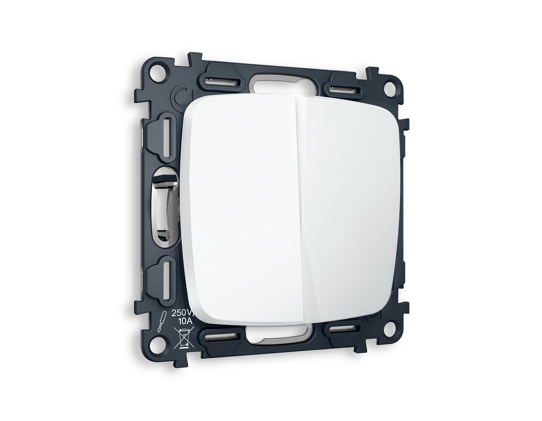 Комплект механизма 2-клавишного выключателя OMEGA MO123010 Белый матовый QUANT. Многогранный ассортимент Ambrella Volt включает в себя механизмы, лицевые панели и рамки, а также комплекты, доступные в различных цветовых решениях. Продукция представлена в модульном исполнении, что позволяет гибко настраивать внешнийвид и функциональность. Вам будет легко заменить лицевую панель, рамку или механизм, найдя идеальное сочетание цветов.