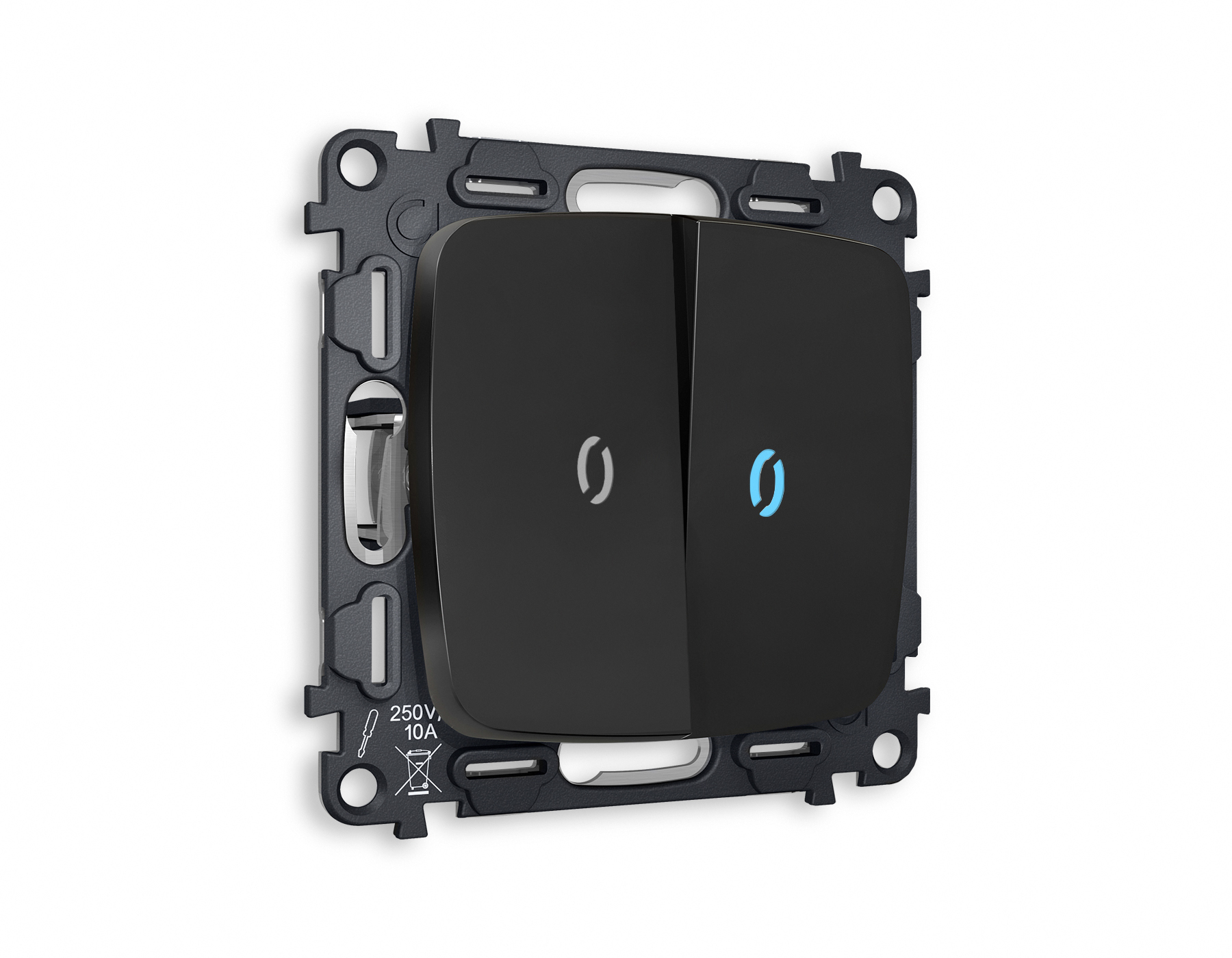 Комплект механизма 2-клавишного выключателя с подсветкой 10000K OMEGA MO804020 Черный матовый QUANT. Многогранный ассортимент Ambrella Volt включает в себя механизмы, лицевые панели и рамки, а также комплекты, доступные в различных цветовых решениях. Продукция представлена в модульном исполнении, что позволяет гибко настраивать внешнийвид и функциональность. Вам будет легко заменить лицевую панель, рамку или механизм, найдя идеальное сочетание цветов.