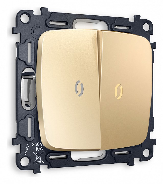 Комплект механизма 2-клавишного выключателя с подсветкой 3200K OMEGA MO604010 Шампань QUANT. Многогранный ассортимент Ambrella Volt включает в себя механизмы, лицевые панели и рамки, а также комплекты, доступные в различных цветовых решениях. Продукция представлена в модульном исполнении, что позволяет гибко настраивать внешнийвид и функциональность. Вам будет легко заменить лицевую панель, рамку или механизм, найдя идеальное сочетание цветов.