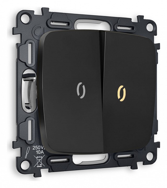 Комплект механизма 2-клавишного выключателя с подсветкой 3200K OMEGA MO804010 Черный матовый QUANT. Многогранный ассортимент Ambrella Volt включает в себя механизмы, лицевые панели и рамки, а также комплекты, доступные в различных цветовых решениях. Продукция представлена в модульном исполнении, что позволяет гибко настраивать внешнийвид и функциональность. Вам будет легко заменить лицевую панель, рамку или механизм, найдя идеальное сочетание цветов.