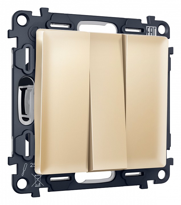 Комплект механизма 3-клавишного выключателя ALFA MA605010 Шампань QUANT. Многогранный ассортимент Ambrella Volt включает в себя механизмы, лицевые панели и рамки, а также комплекты, доступные в различных цветовых решениях. Продукция представлена в модульном исполнении, что позволяет гибко настраивать внешнийвид и функциональность. Вам будет легко заменить лицевую панель, рамку или механизм, найдя идеальное сочетание цветов.