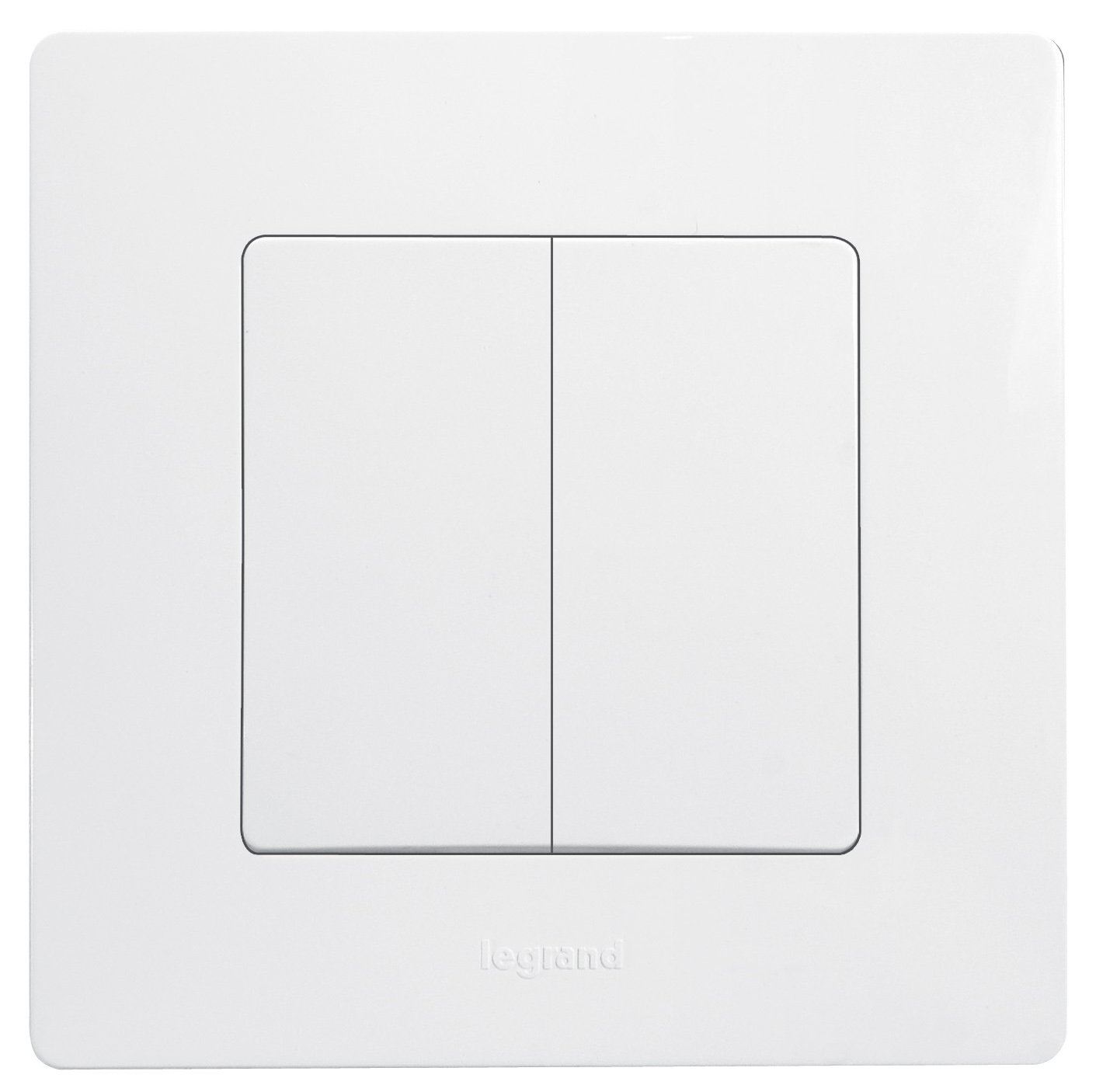Выключатель двухклавишный Legrand Etika для скрытого монтажа, номинальный ток 10 А, цвет белый ,предназначен для управления двумя электрическими цепями.