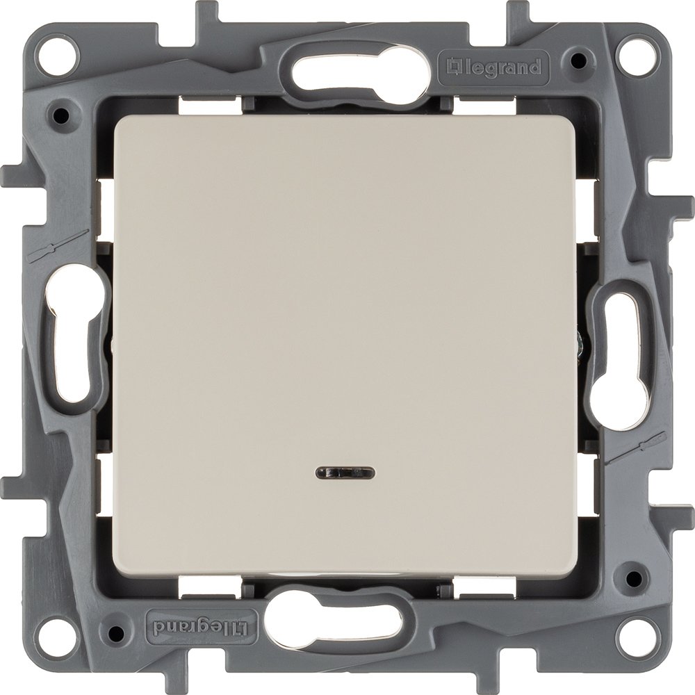 Выключатель с подсветкой одноклавишный Legrand Etika для скрытого монтажа, номинальный ток 10 А, цвет слоновая кость. Используется для управления приборами освещения, вентиляции и т.д.