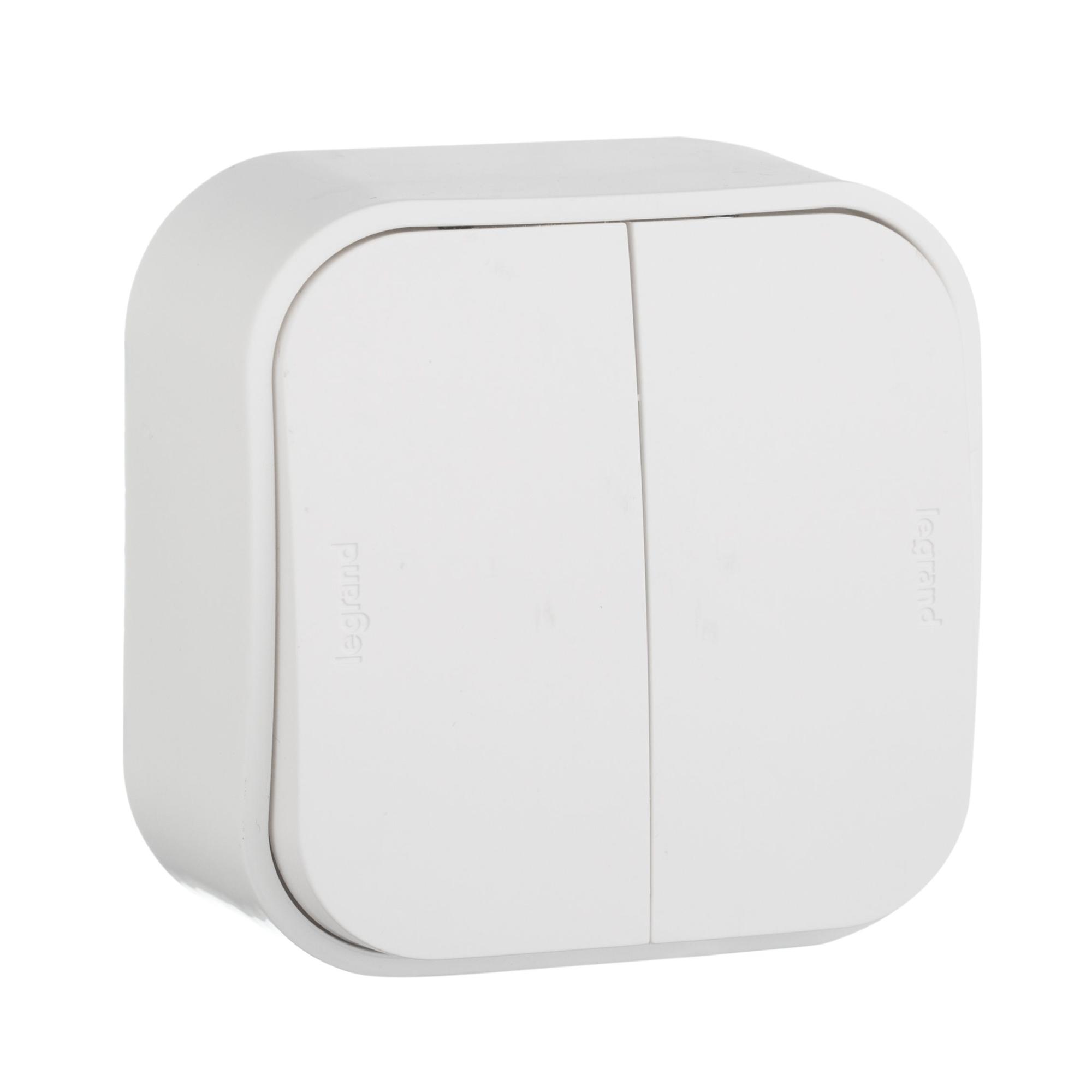 Переключатель двухклавишный Legrand Quteo для открытого монтажа, номинальный ток 10 А, цвет белый, предназначен для установки в электрических сетях жилых и общественных зданий и применяется для управления двумя нагрузками с одного или с двух мест. Рекомендуется к применению в деревянных домах и хозяйственных постройках.