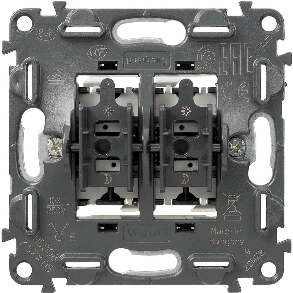 Legrand Valena Мех IN'MATIC Выключатель 2-клавишный 10АХ 250В от производителя Legrand. Артикул производителя 752005.