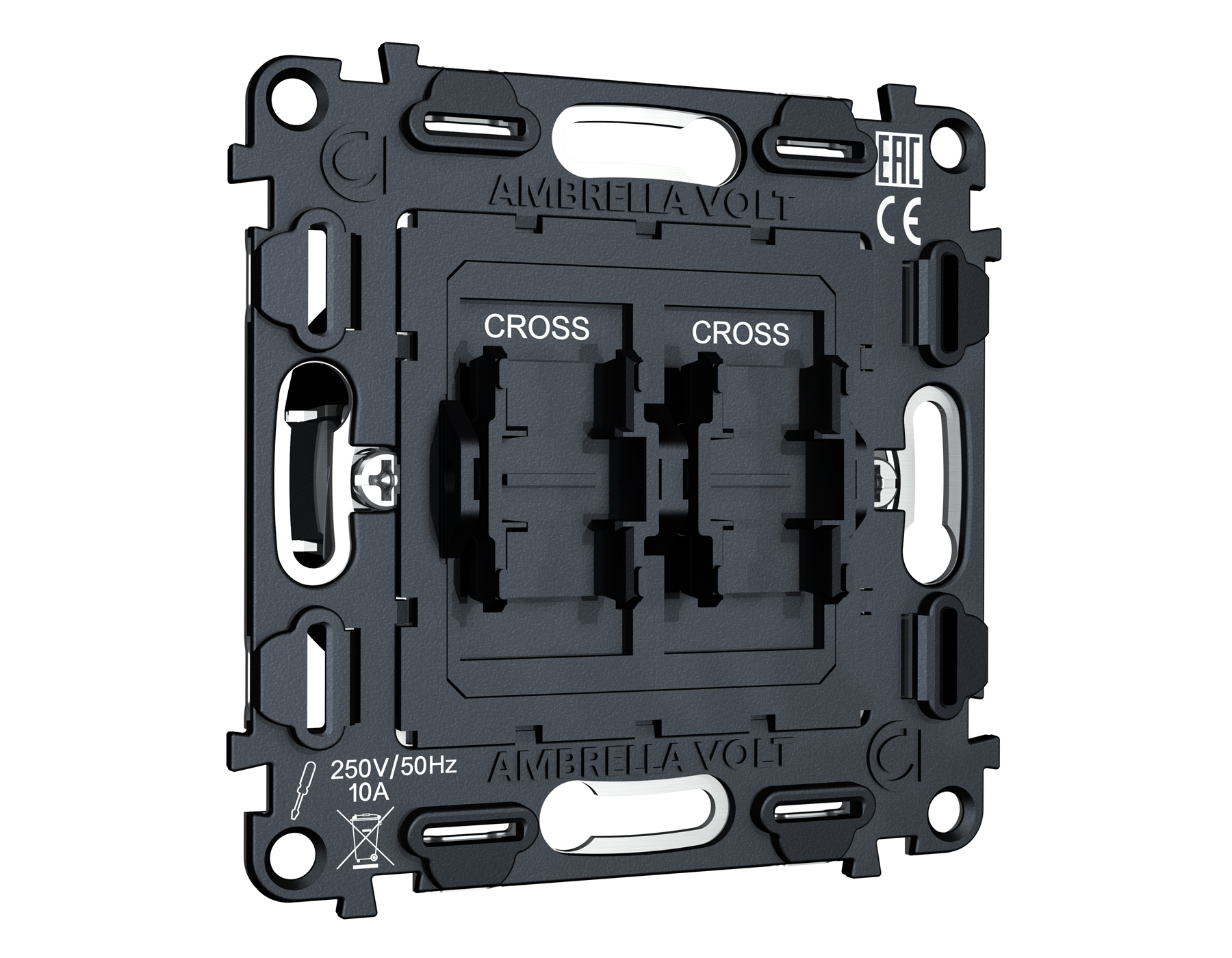 Механизм 2-клавишного перекрестного выключателя 10A-250V QUANT VM125. Многогранный ассортимент Ambrella Volt включает в себя механизмы, лицевые панели и рамки, а также комплекты, доступные в различных цветовых решениях. Продукция представлена в модульном исполнении, что позволяет гибко настраивать внешнийвид и функциональность. Вам будет легко заменить лицевую панель, рамку или механизм, найдя идеальное сочетание цветов.