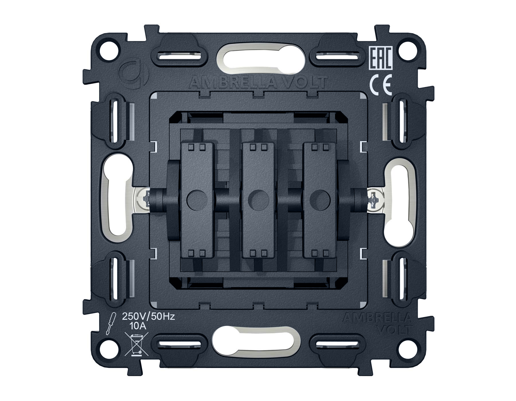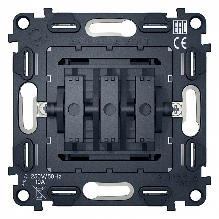 Механизм 3-клавишного выключателя 10A-250V QUANT VM133. Многогранный ассортимент Ambrella Volt включает в себя механизмы, лицевые панели и рамки, а также комплекты, доступные в различных цветовых решениях. Продукция представлена в модульном исполнении, что позволяет гибко настраивать внешнийвид и функциональность. Вам будет легко заменить лицевую панель, рамку или механизм, найдя идеальное сочетание цветов.