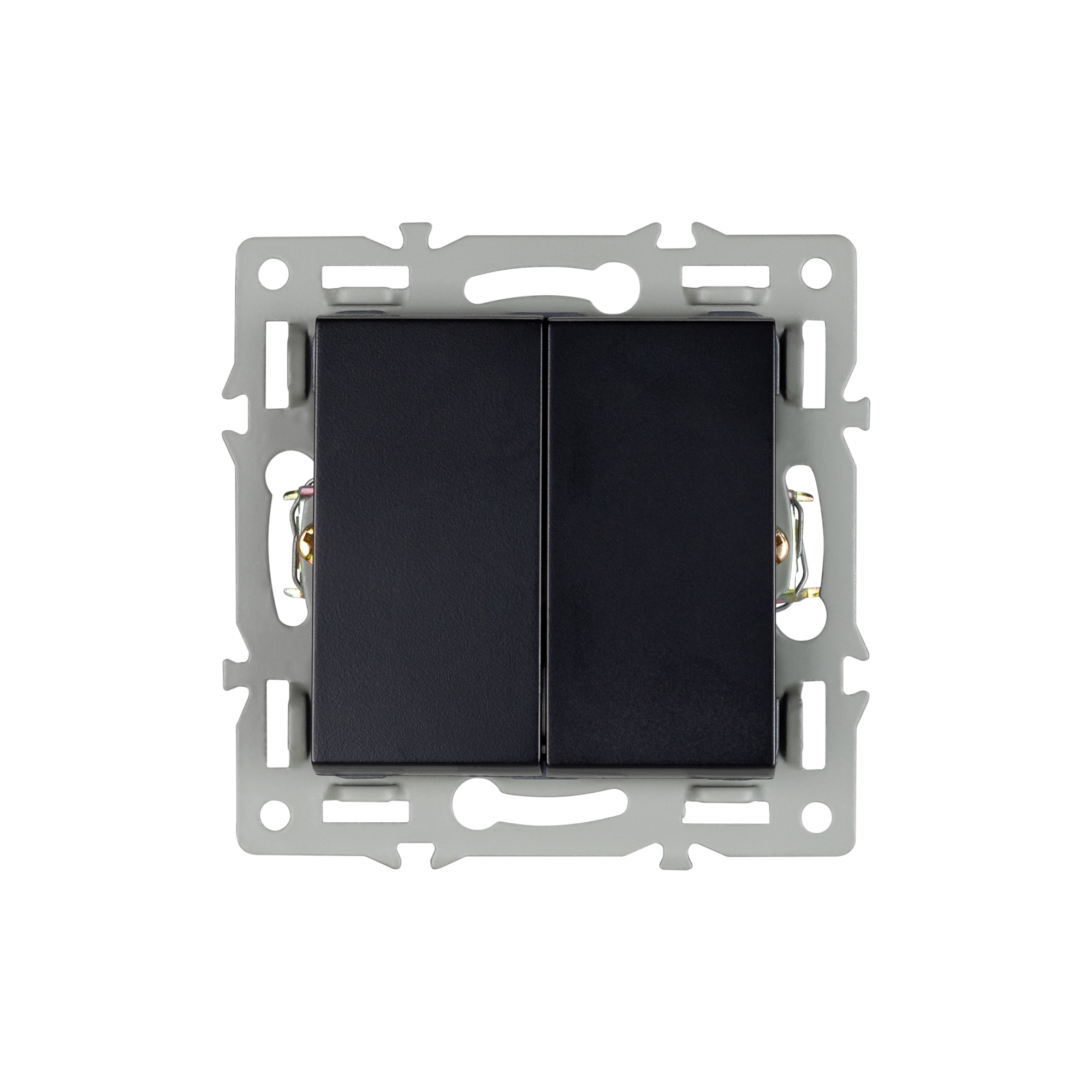 Механизм выключателя клавишный на 1 пост 2 клавиши (непроходной), с суппортом из алюминия. Цвет - черный. Степень пылевлагозащиты - IP20.