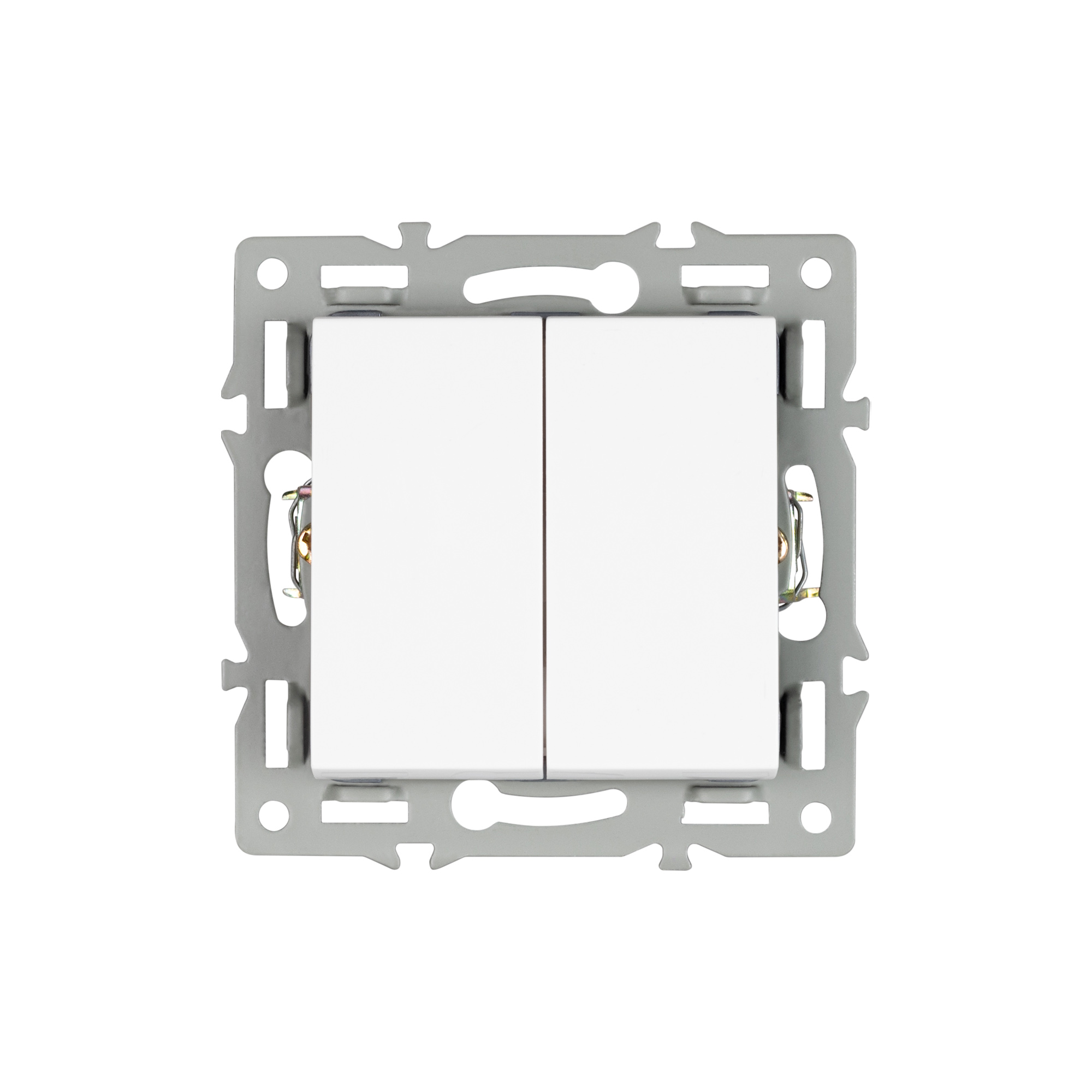Механизм выключателя клавишный на 1 пост 2 клавиши (проходной), с суппортом из алюминия. Цвет - белый. Степень пылевлагозащиты - IP20.