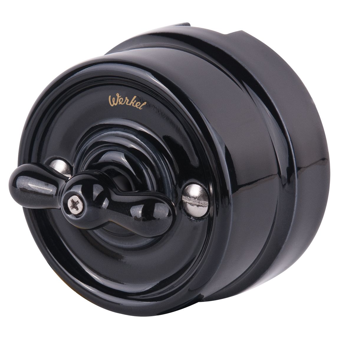 <p>Ретро переключатель одноклавишный (два положения) W5612008 в черном цвете 10 А 250 В, 50 Гц является важнейшим элементом любой домашней электросети, служащим для управления света. Выключатель представляет собой механизм с поворотным переключением, имеющий керамический корпус и сменную ручку-барашек. <p><p> Накладной переключатель не требует дополнительных работ по монтажу отверстий и его можно устанавливать на любые поверхности. Переключатель имеет удобное подключение проводов с сечением от 0.75 мм кв до 2.5 мм кв, которое осуществляется с помощью самозажимного механизма. <p><p> Керамический корпус обладает высокой механической прочностью, термостойкостью и диэлектрическими свойствами. Выключатель совместим со всеми ретро рамками из коллекций Werkel, характеризуется удобством использования и имеет эстетический внешний вид.<p><p> </div>