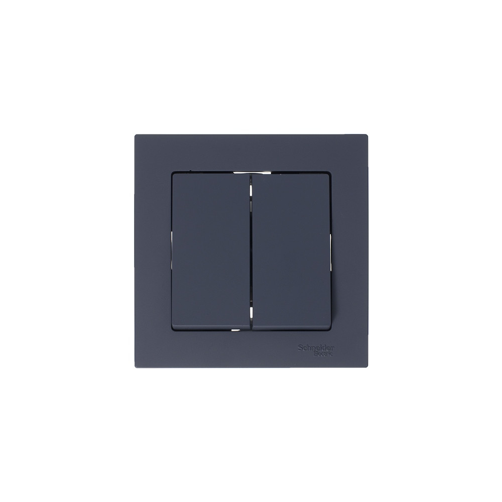 Механизм выключателя 2-клавишного Systeme Electric (ранее Schneider Electric) серии AtlasDesign в цвете грифель подходит для сетей 250 В, на ток 10 А.