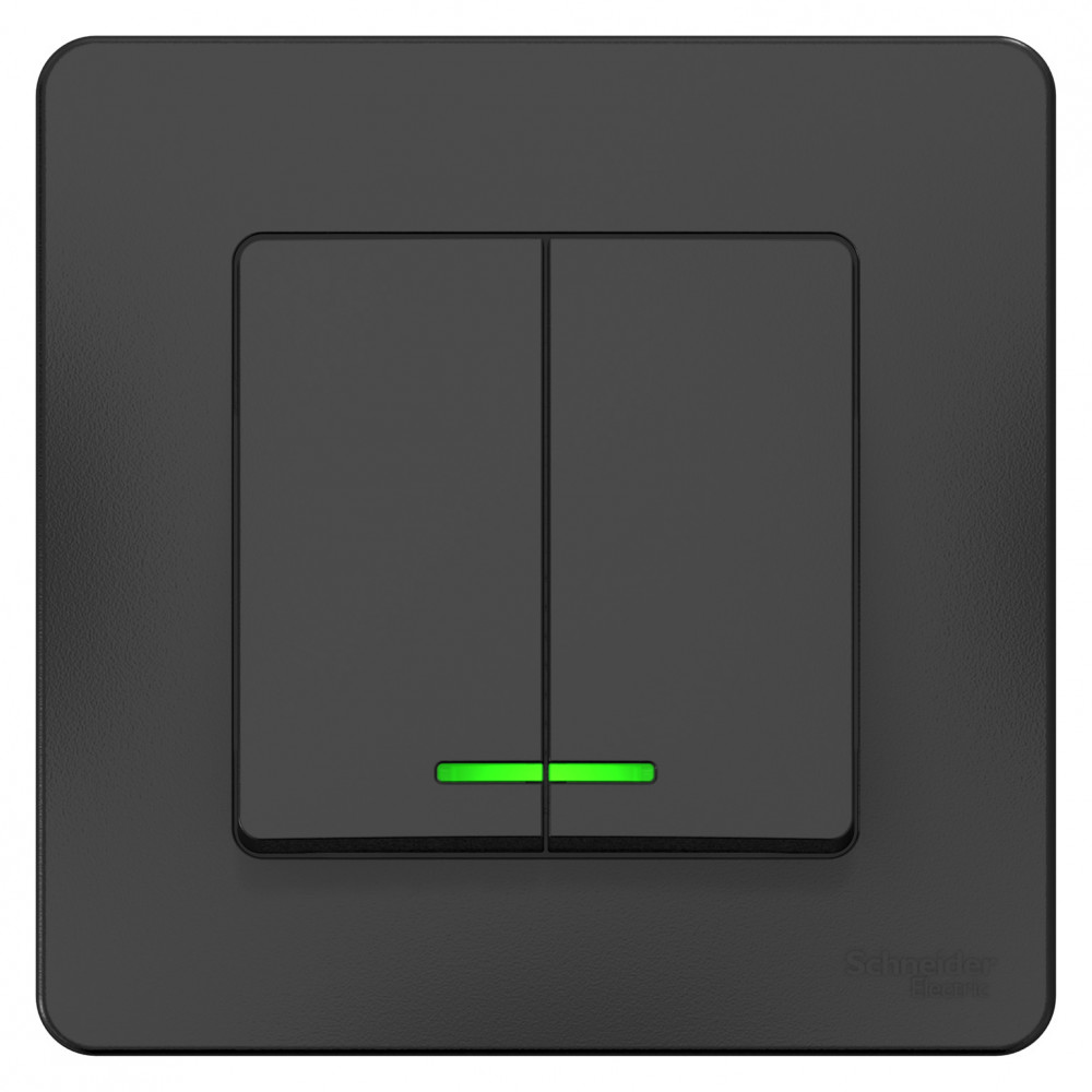 Выключатель Systeme Electric (ранее Schneider Electric) BLANCA (антрацит, скрытой установки) двухклавишный предназначен для сетей до 250В, на ток до 10А. Подсветка делает его легко находимым в отсутствие освещения. Двухклавишный выключатель позволяет управлять двумя источниками света из одной точки.