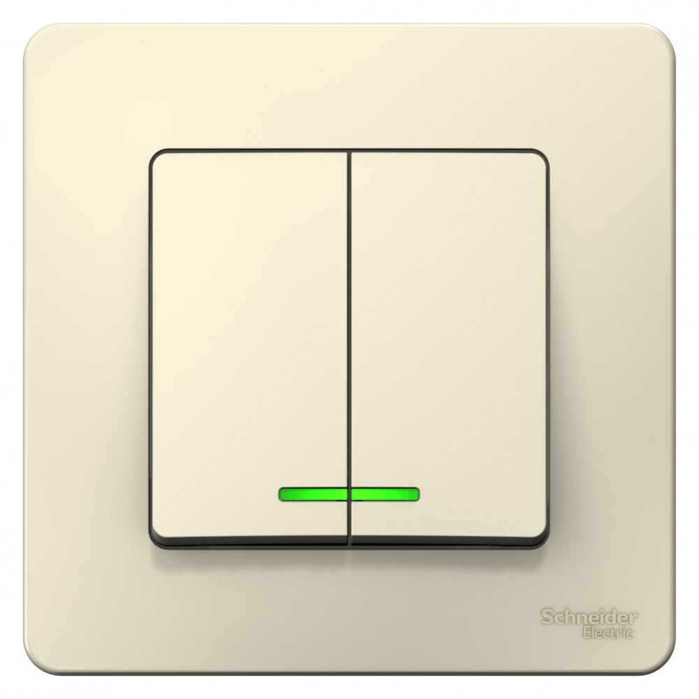 Выключатель Systeme Electric (ранее Schneider Electric) BLANCA (молочный, скрытой установки) двухклавишный предназначен для сетей до 250В, на ток до 10А. Подсветка делает его легко находимым в отсутствие освещения. Двухклавишный выключатель позволяет управлять двумя источниками света из одной точки.