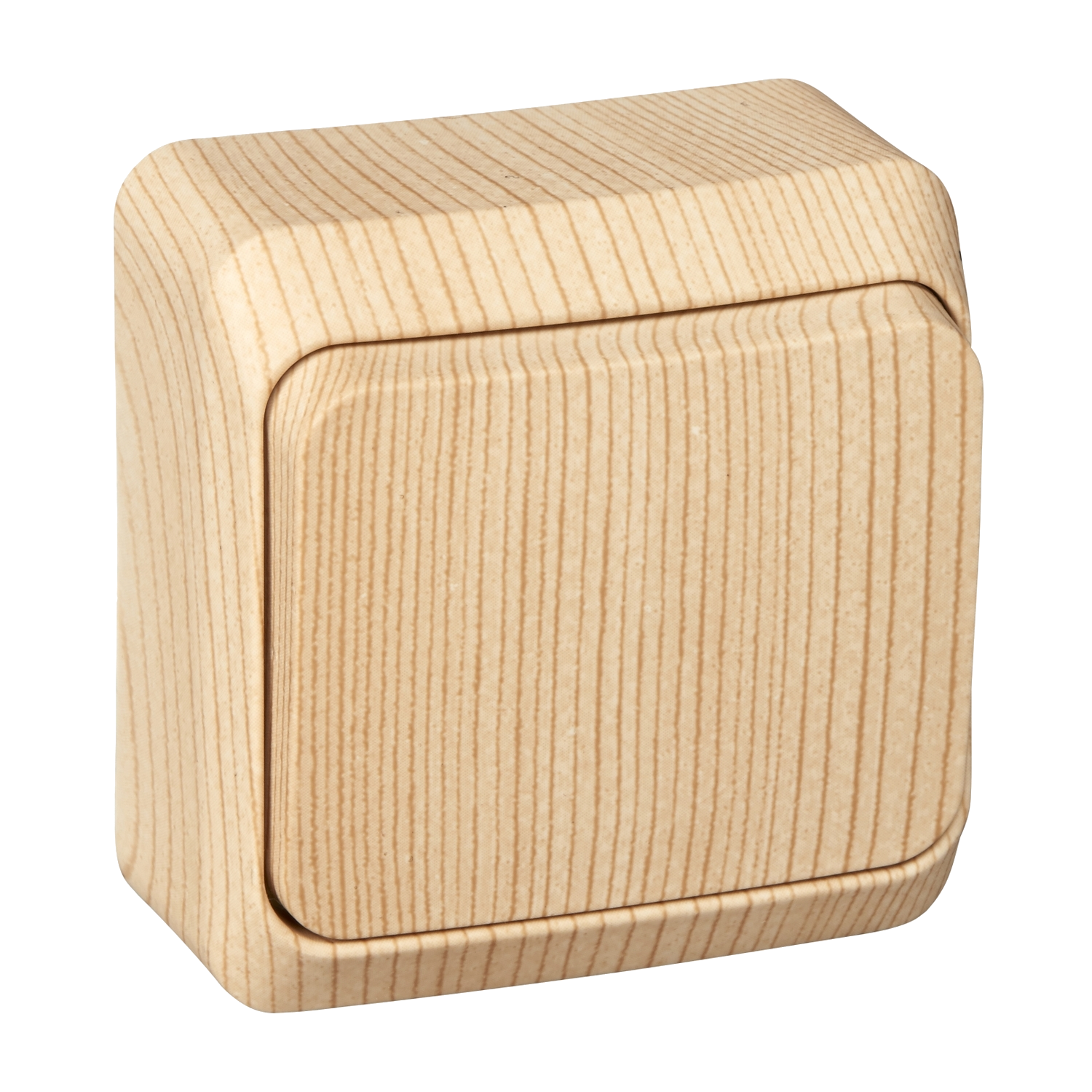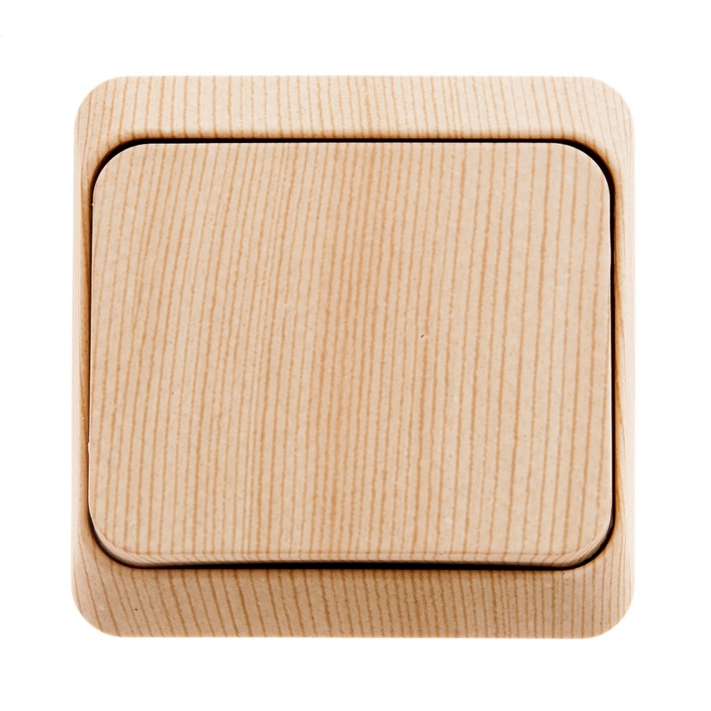 Переключатель Systeme Electric (ранее Schneider Electric) ЭТЮД (сосна, открытой установки) одноклавишный предназначен для применения в сетях до 250В, на ток до 10А. Переключатель позволяет управлять одним источником света из двух точек. Его можно установить, например, в двух концах коридора, у входа в комнату или у кровати. Изделия цвета Сосна обладают уникальным рисунком, напоминающим древесный сруб. Сделано в России.