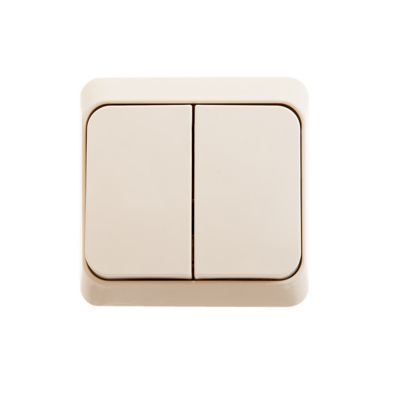 Выключатель Systeme Electric (ранее Schneider Electric) ЭТЮД (кремовый, открытой установки) двухклавишный предназначен для применения в сетях до 250В, на ток до 10А. Наличие подсветки делает его легко находимым при отсутствии освещения. Две клавиши позволяют управлять двумя источниками света с одной точки. Сделано в России.