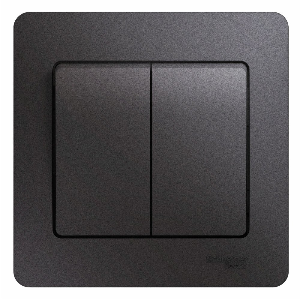 Выключатель Systeme Electric (ранее Schneider Electric) серии Glossa (в сборе, цвет графит) двухклавишный подходит для сетей 250 В, на ток 10 А.