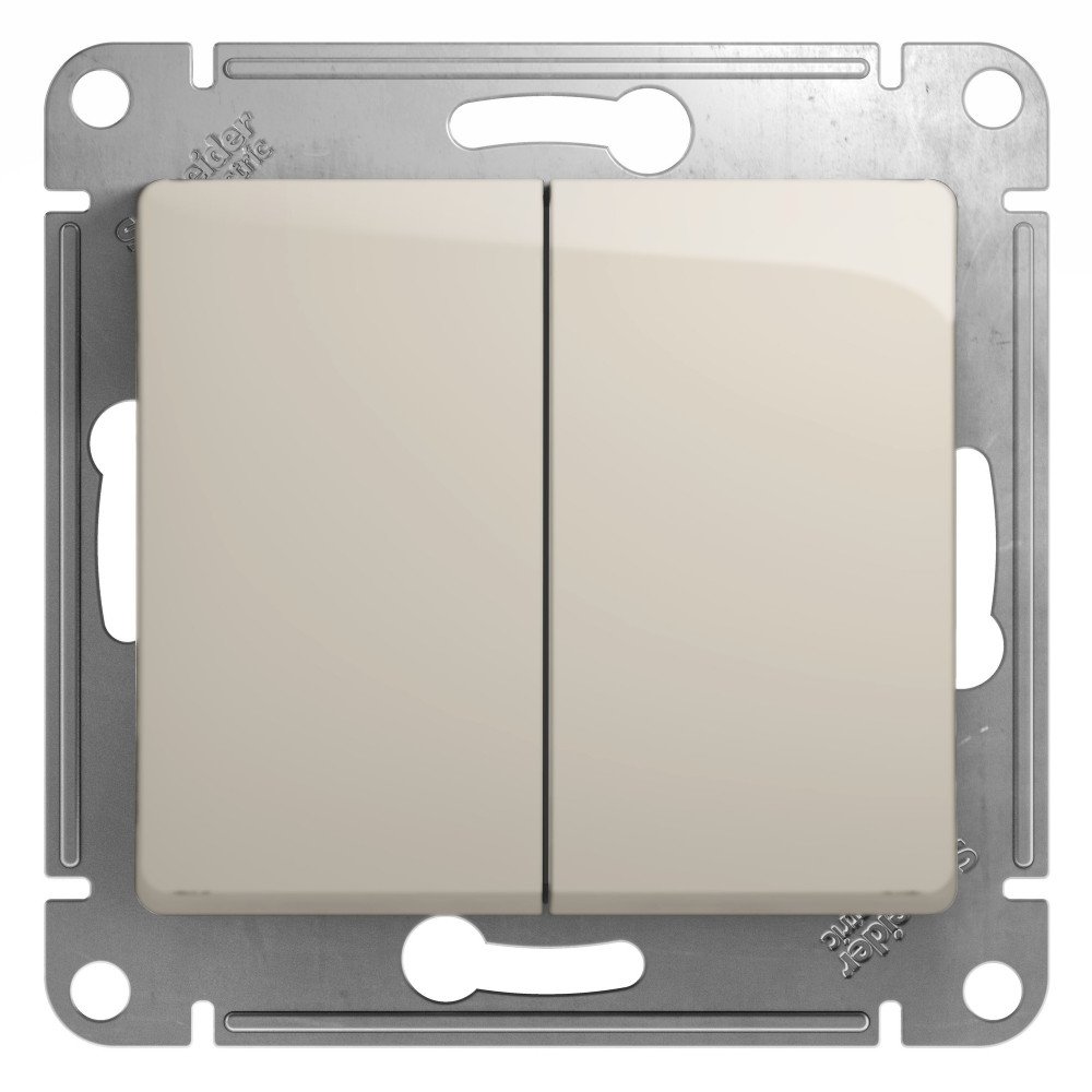 Механизм Systeme Electric (ранее Schneider Electric) серии Glossa (цвет молочный) переключателя 2-клавишного подходит для сетей 250 В, на ток 10 А.