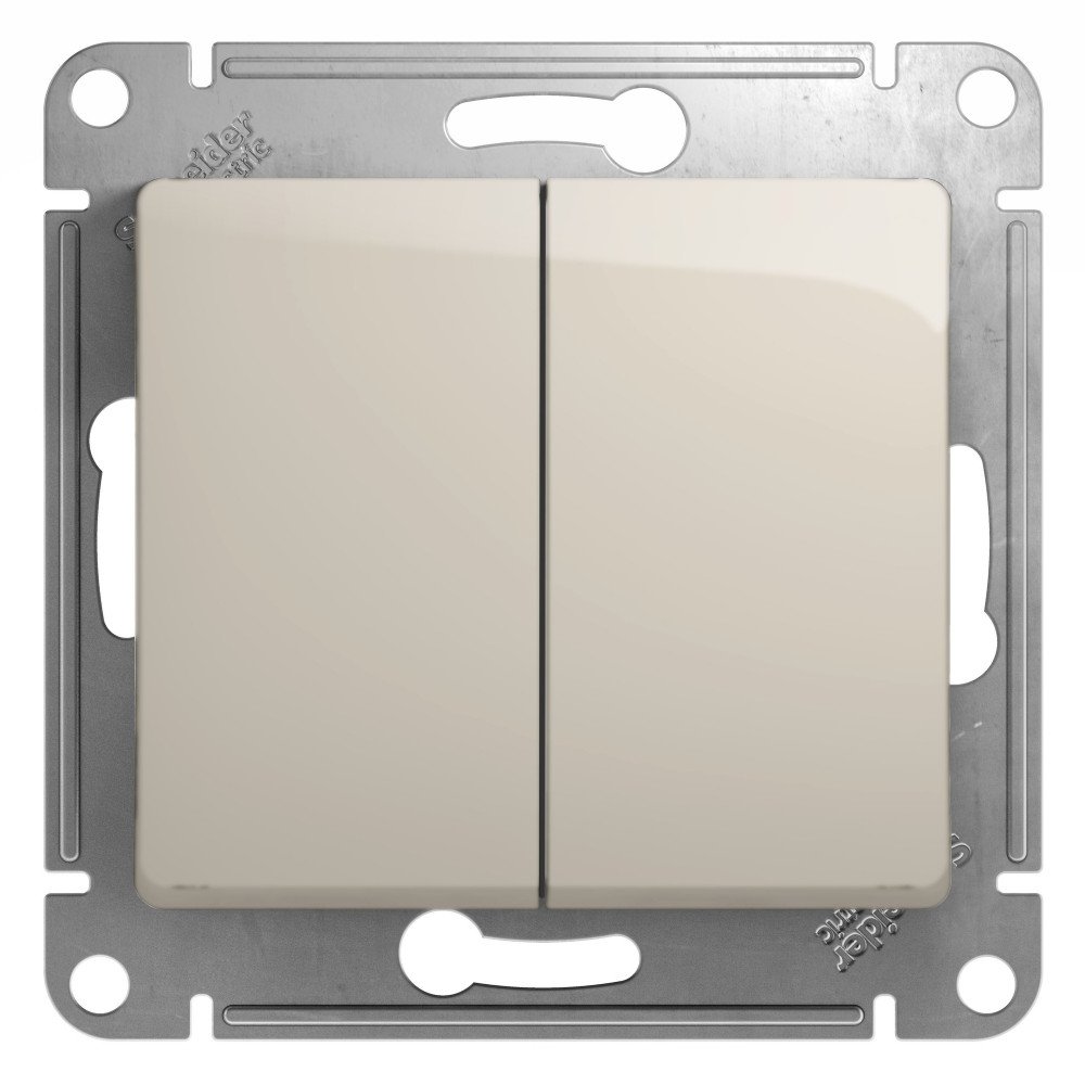 Механизм Systeme Electric (ранее Schneider Electric) серии Glossa (цвет молочный) выключателя 2-клавишного подходит для сетей 250 В, на ток 10 А.