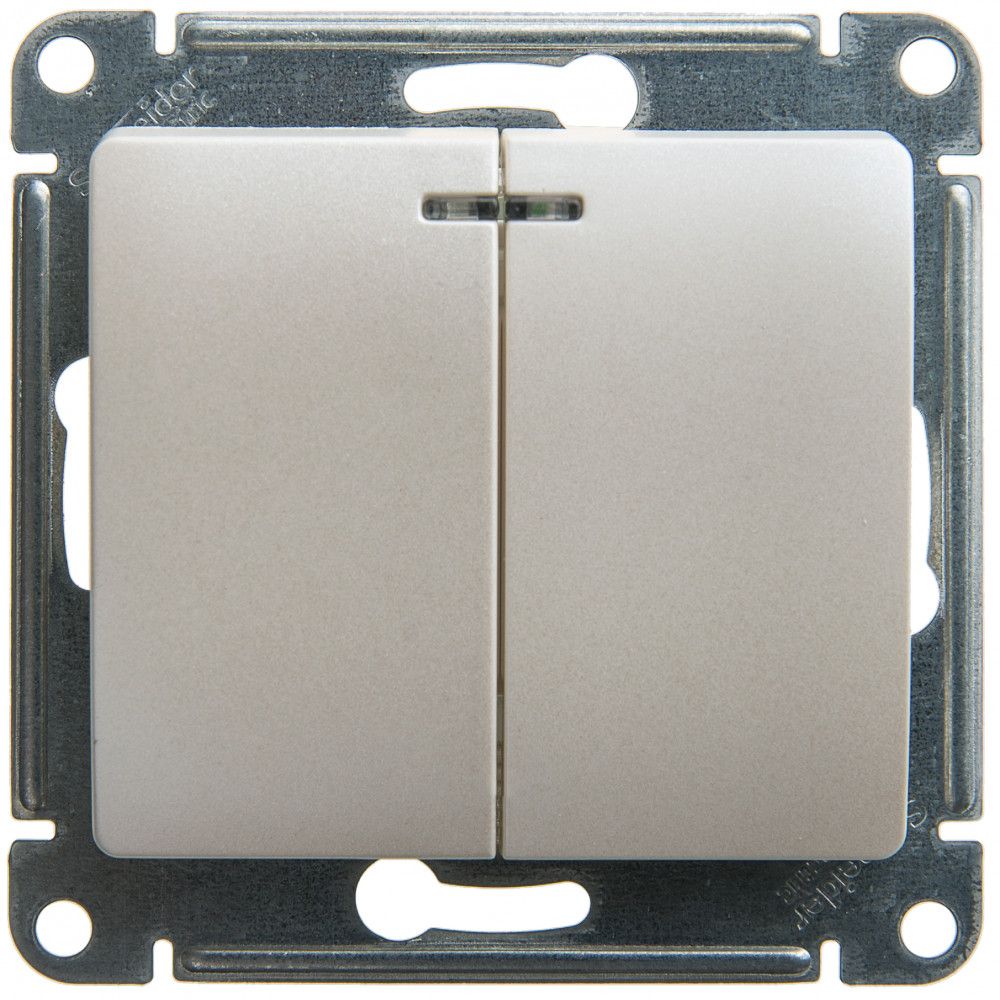 Механизм Systeme Electric (ранее Schneider Electric) серии Glossa (цвет перламутр) выключателя 2-клавишного c подсветкой подходит для сетей 250 В, на ток 10 А.