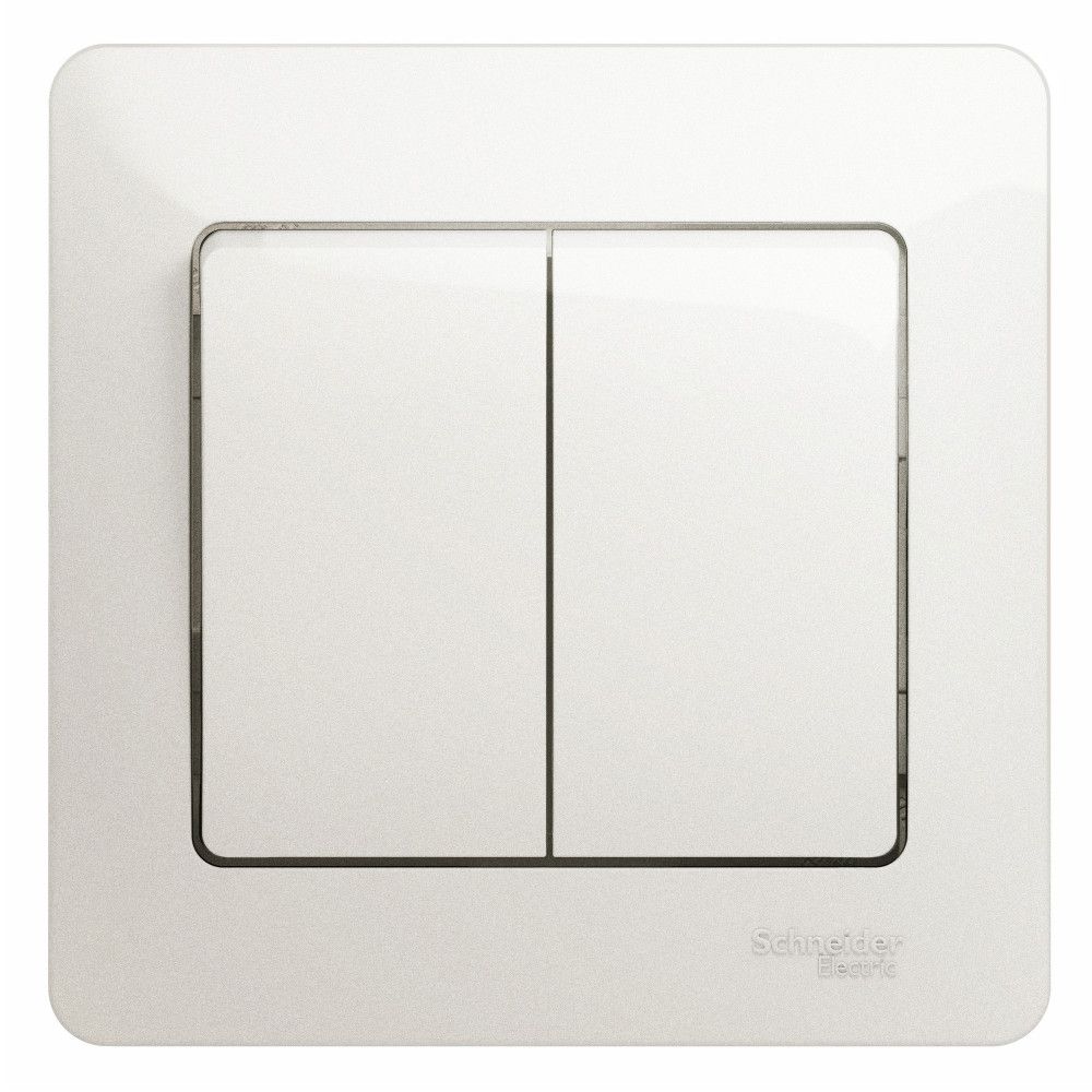 Выключатель Systeme Electric (ранее Schneider Electric) серии Glossa (в сборе, цвет перламутр) двухклавишный подходит для сетей 250 В, на ток 10 А.