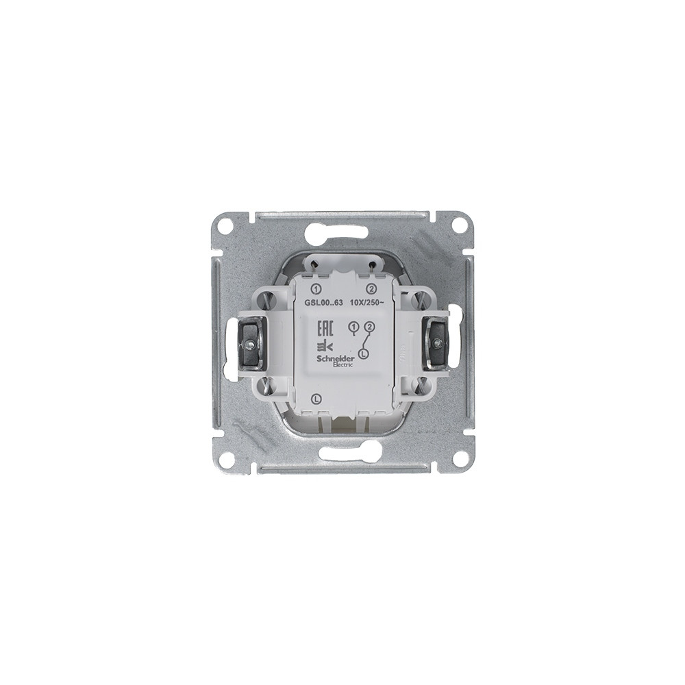 Механизм Systeme Electric (ранее Schneider Electric) серии Glossa (цвет платина) переключателя 1-клавишного с подсветкой подходит для сетей 250 В, на ток 10 А.