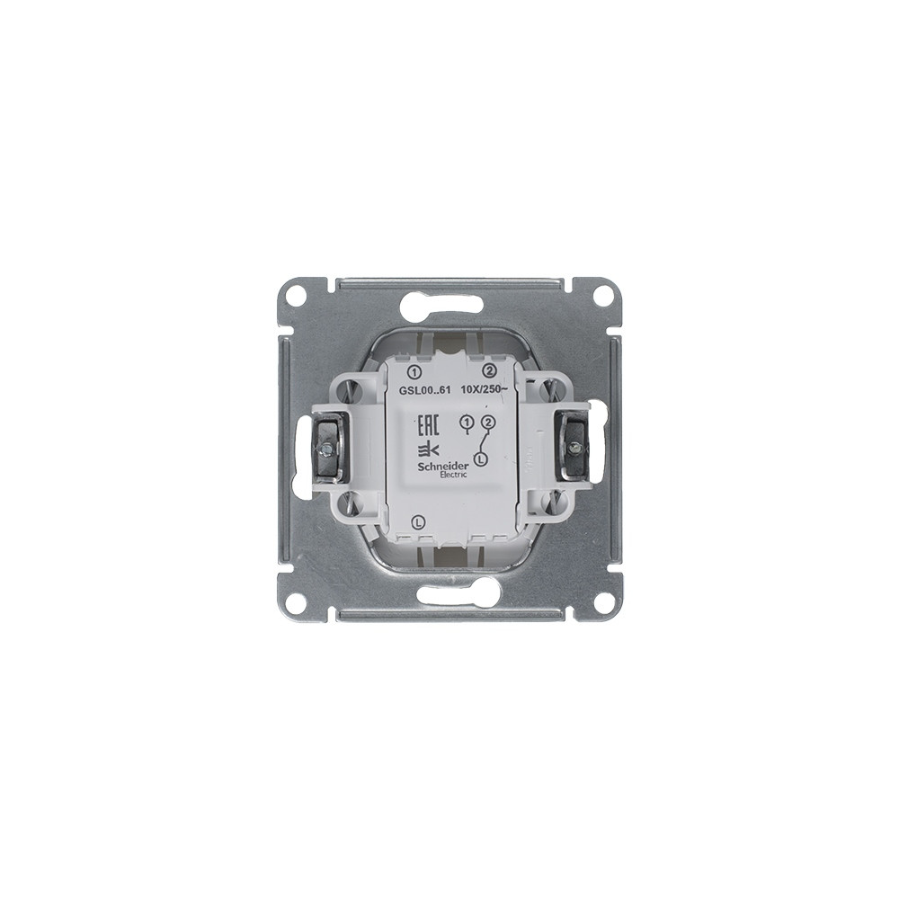 Механизм Systeme Electric (ранее Schneider Electric) серии Glossa (цвет платина) переключателя 1-клавишного подходит для сетей 250 В, на ток 10 А.