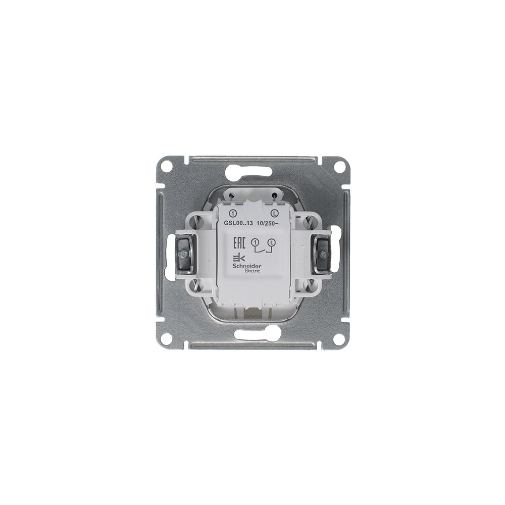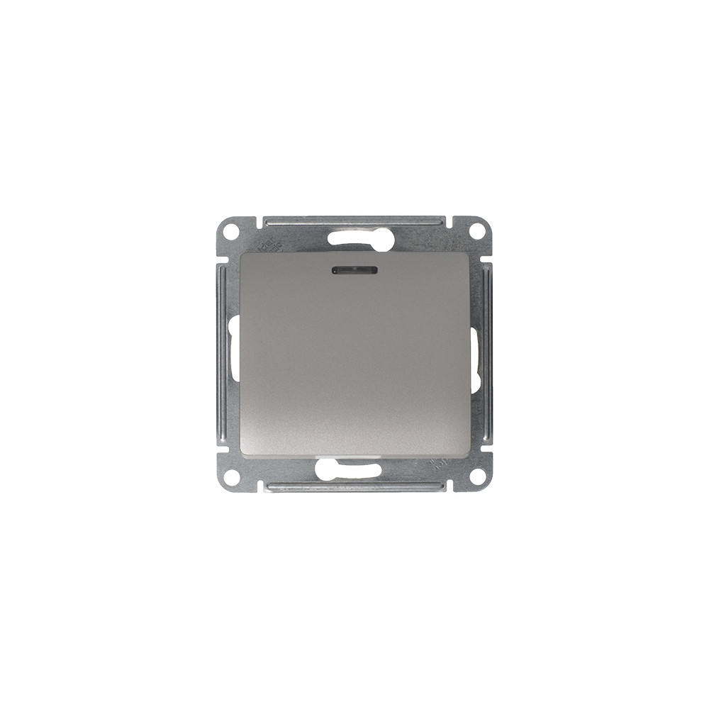 Механизм Systeme Electric (ранее Schneider Electric) серии Glossa (цвет платина) выключателя 1-клавишного с подсветкой подходит для сетей 250 В, на ток 10 А.