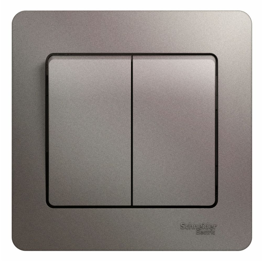 Выключатель Systeme Electric (ранее Schneider Electric) серии Glossa (в сборе, цвет платина) двухклавишный подходит для сетей 250 В, на ток 10 А.