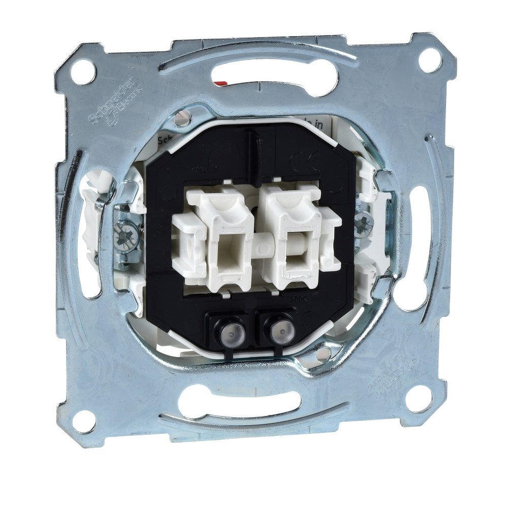 Механизм Schneider Electric Merten серии QuickFlex D-Life однополюсного двухклавишного выключателя с безвинтовыми зажимами и светодиодом предназначен для сетей до 250В, на ток до 10А. Клавиша заказывается отдельно.