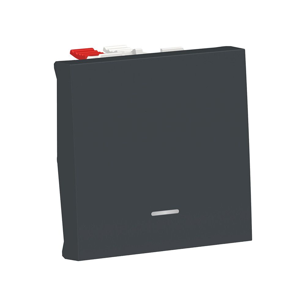 Переключатель одноклавишный Schneider Electric UNICA MODULAR (антрацит) двухмодульный с подсветкой предназначен для сетей до 250 В на ток до 10 А.