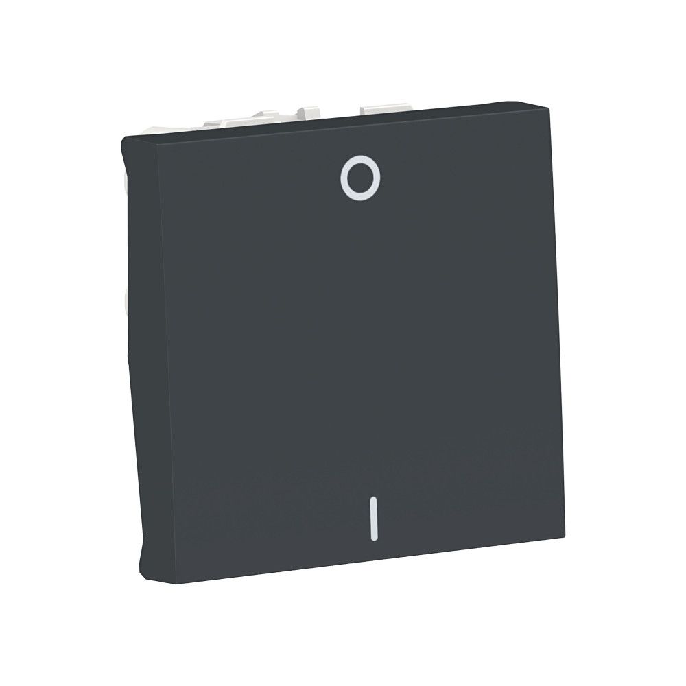 Выключатель одноклавишный Schneider Electric UNICA MODULAR (антрацит) двухмодульный двухполюсный с индикацией, с винтовыми клеммами предназначен для сетей до 250 В на ток до 16 А.