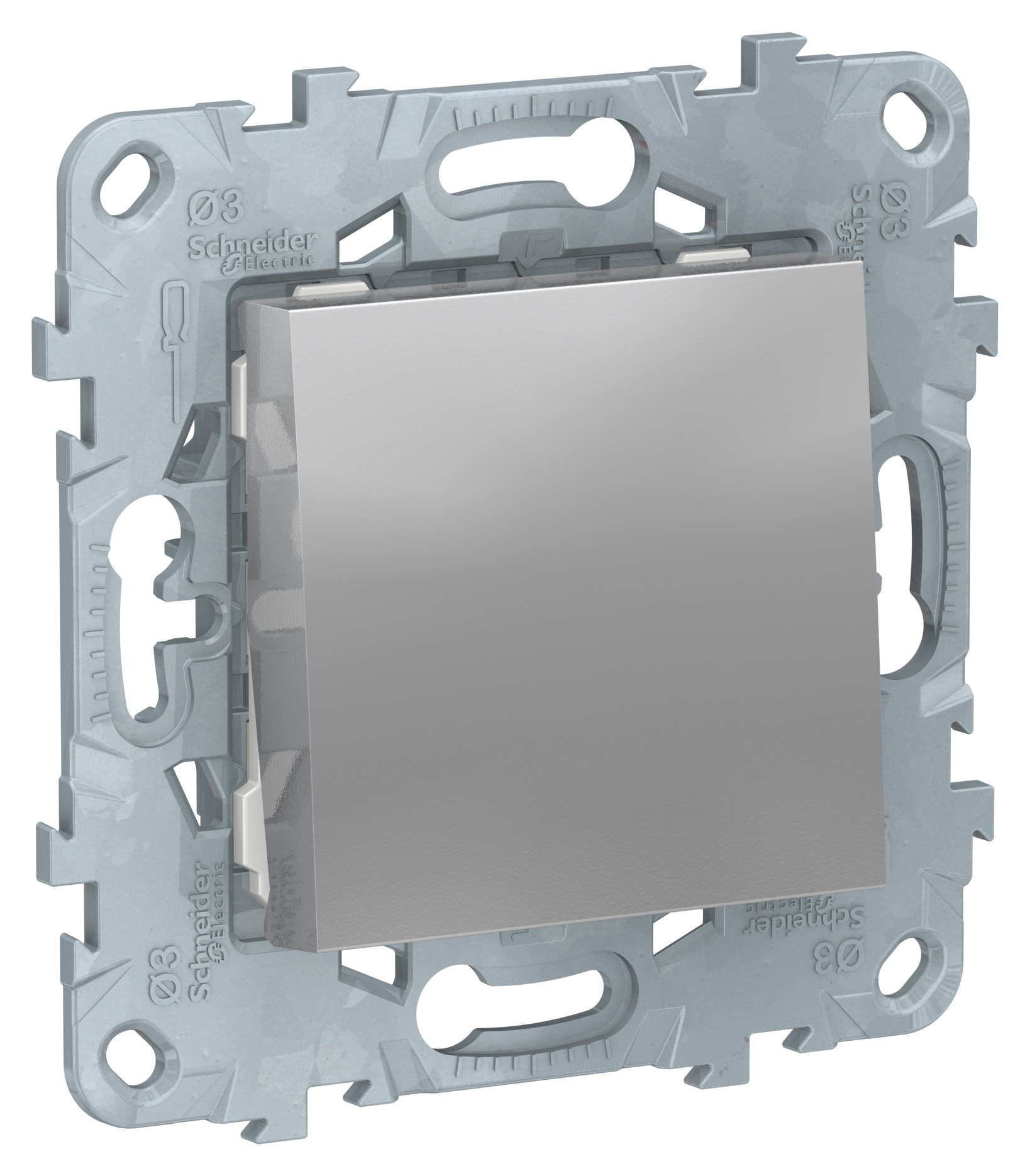 Переключатель одноклавишный Schneider Electric UNICA NEW (алюминий) без подсветки предназначен для сетей до 250 В на ток до 10 А.