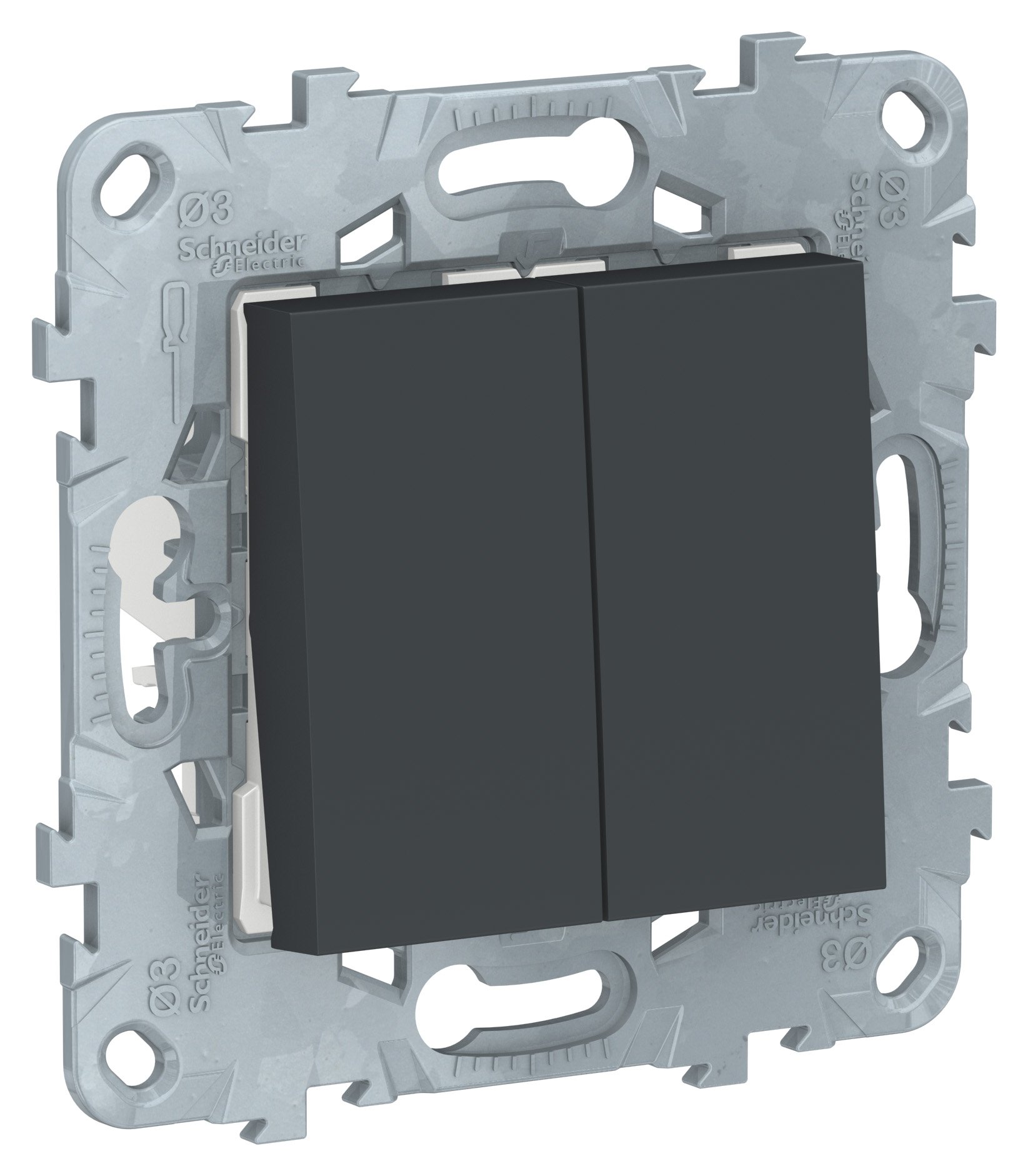 Переключатель двухклавишный Schneider Electric UNICA NEW (антрацит) перекрёстный без подсветки предназначен для сетей до 250 В на ток до 10 А.