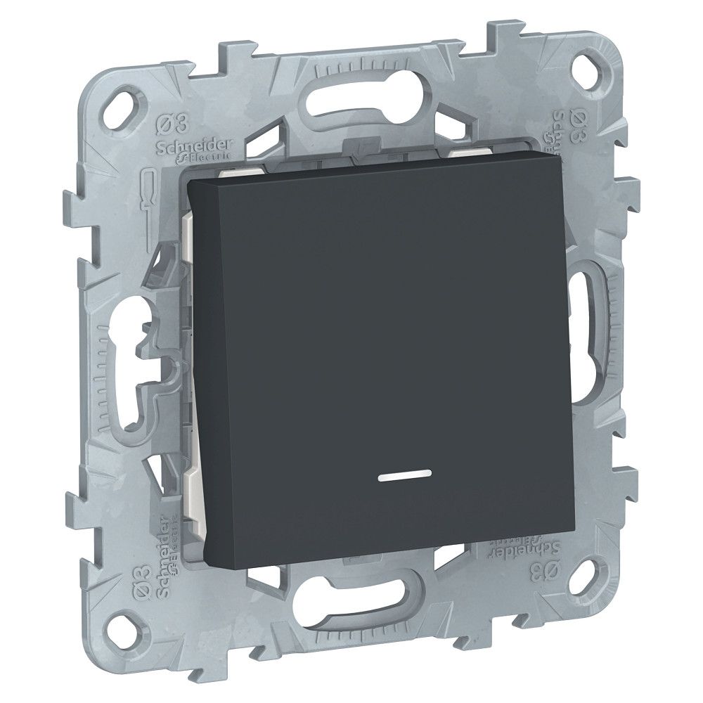 Выключатель одноклавишный Schneider Electric UNICA NEW (антрацит) с подсветкой предназначен для сетей до 250 В на ток до 10 А.