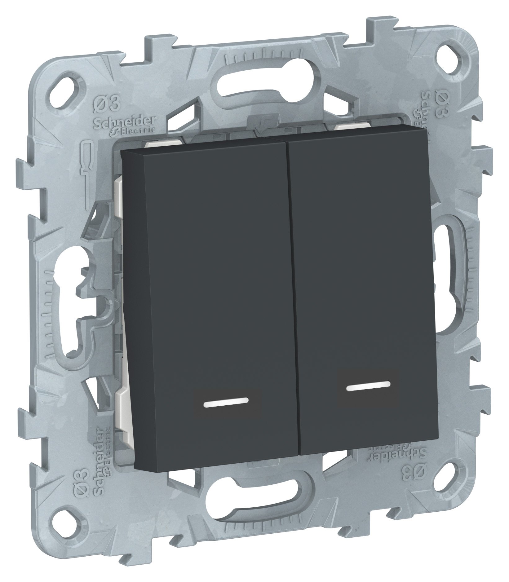Выключатель двухклавишный Schneider Electric UNICA NEW (антрацит) с подсветкой предназначен для сетей до 250 В на ток до 10 А.
