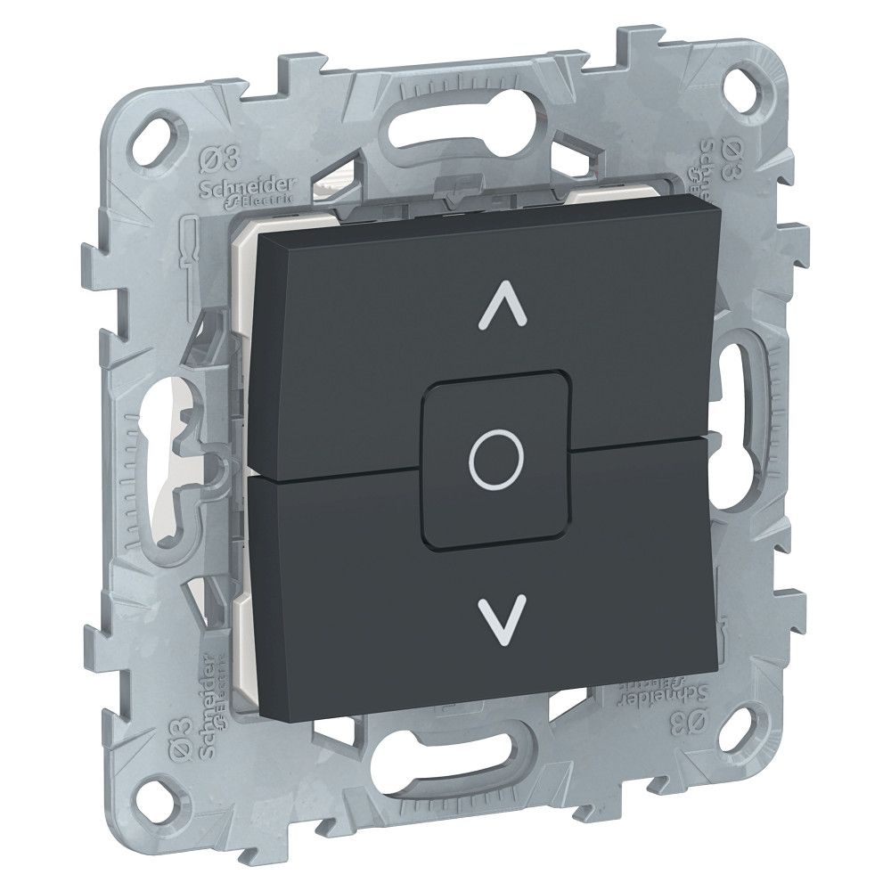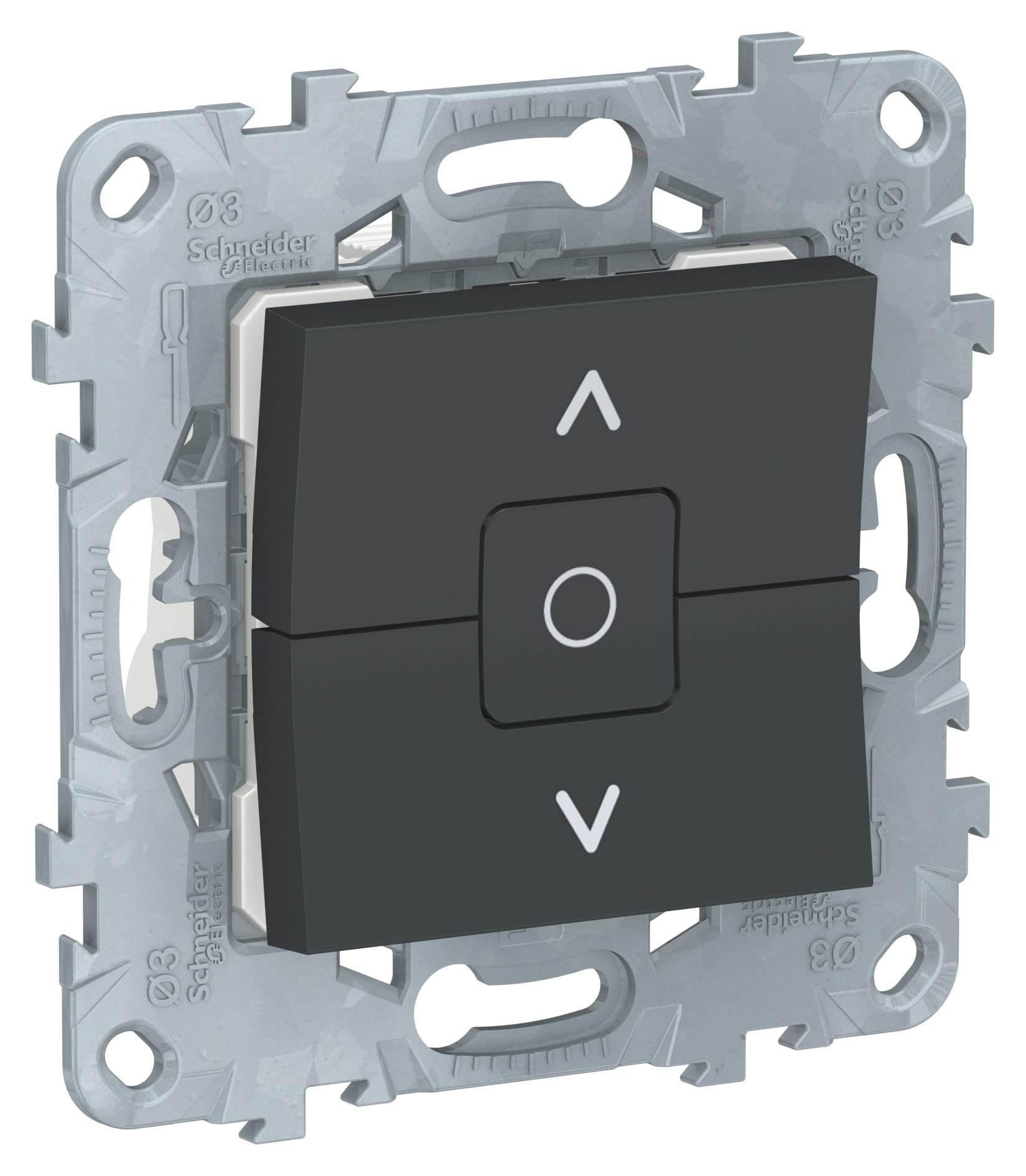 Выключатель двухклавишный для жалюзи Schneider Electric UNICA NEW (антрацит) без подсветки предназначен для сетей до 250 В на ток до 6 А.