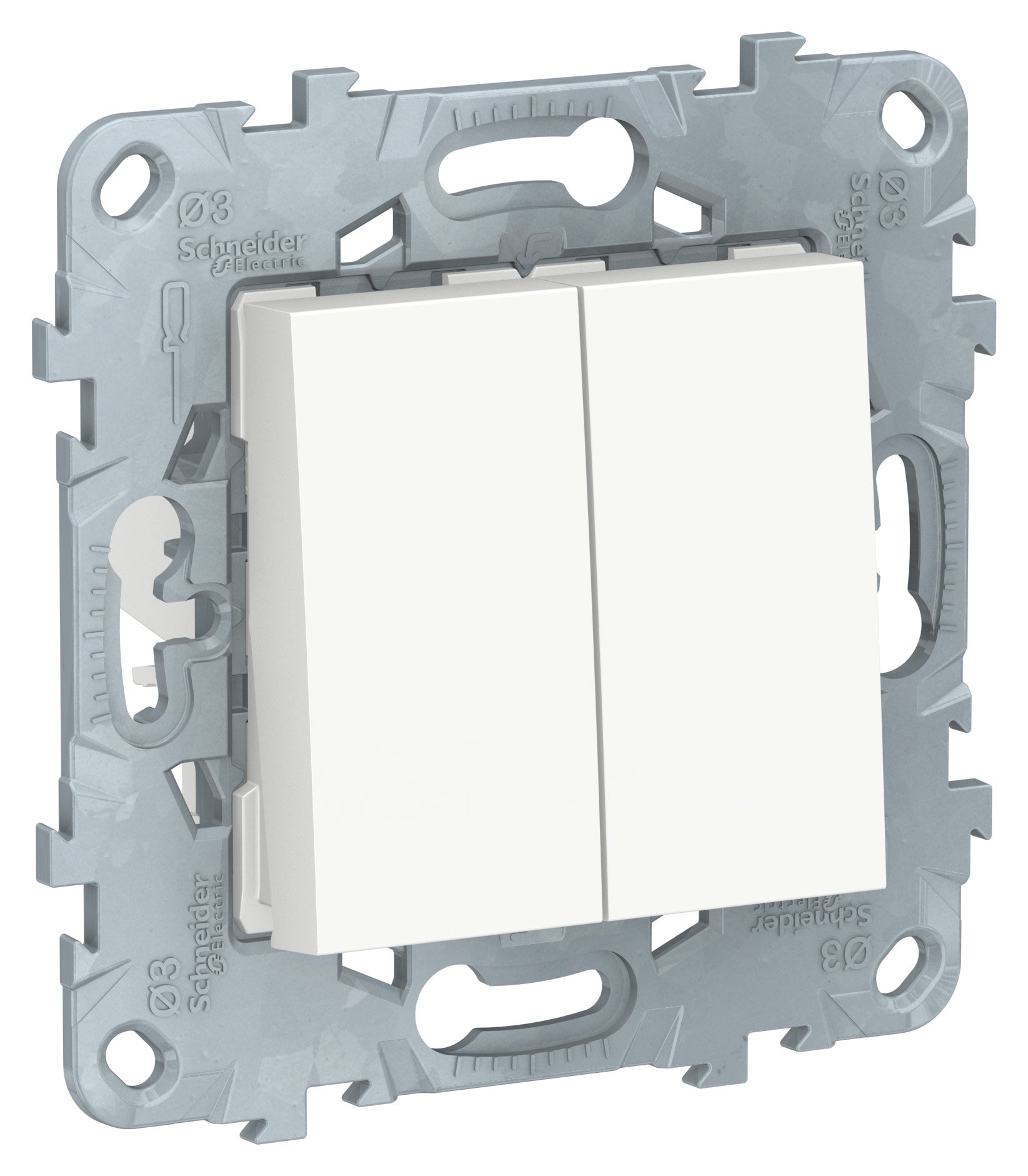 Переключатель двухклавишный Schneider Electric UNICA NEW (белый) перекрёстный без подсветки предназначен для сетей до 250 В на ток до 10 А.