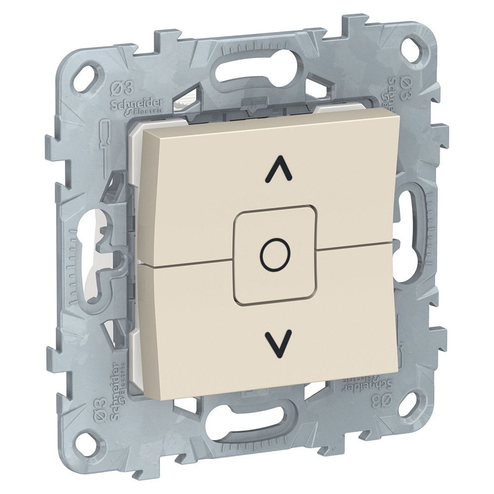 Выключатель двухклавишный для жалюзи Schneider Electric UNICA NEW (бежевый) без подсветки предназначен для сетей до 250 В на ток до 6 А.
