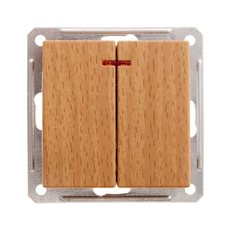 Механизм Schneider Electric W59 (цвет бук) выключателя 2-клавишного с подсветкой подходит для сетей 250 В, на ток до 16 А.