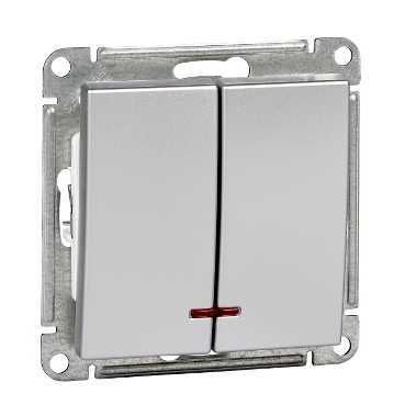 Механизм Schneider Electric W59 (цвет матовый хром) выключателя 2-клавишного с подсветкой подходит для сетей 250 В, на ток до 10 А.