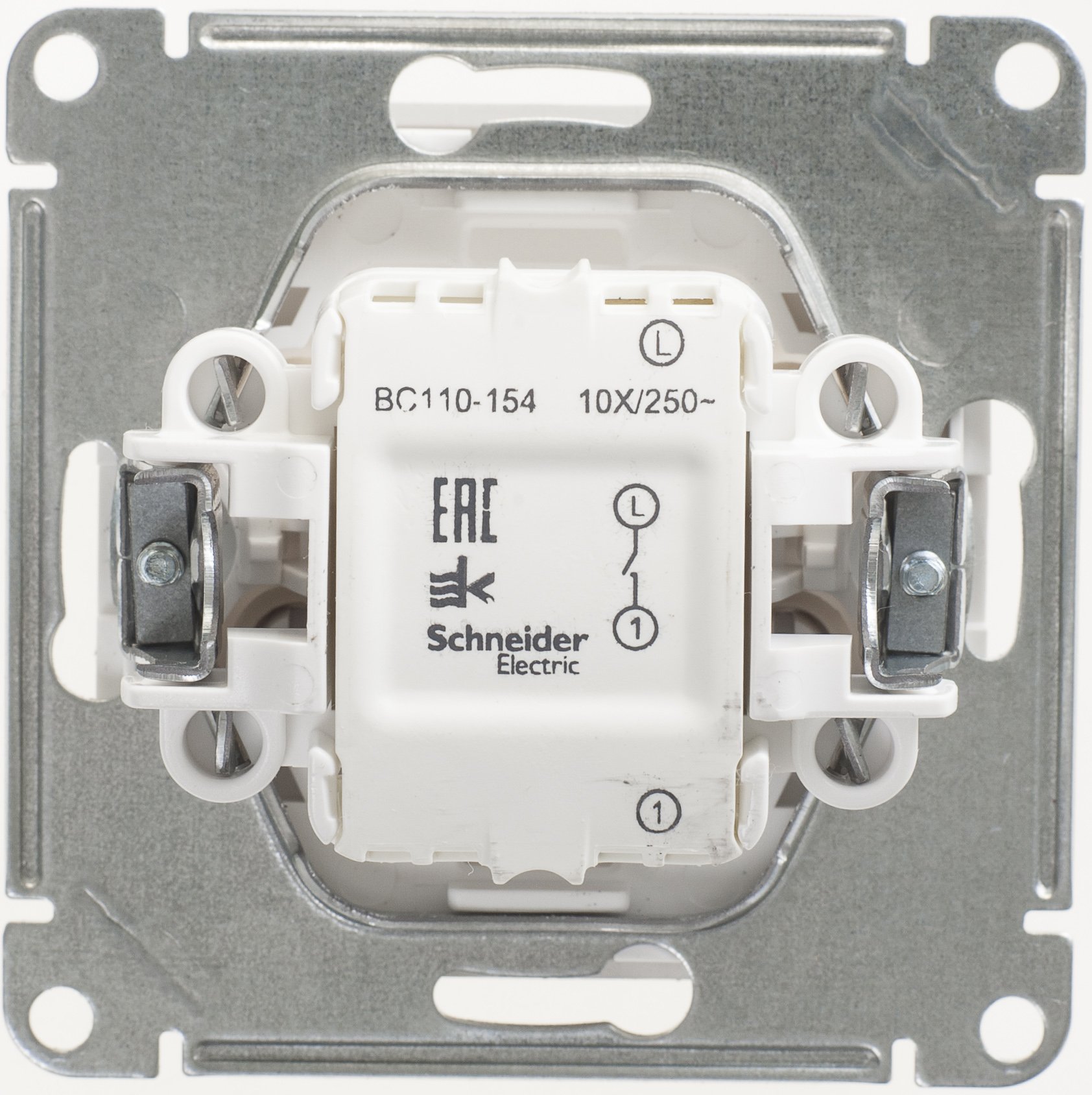 Механизм Schneider Electric W59 (цвет шампань) выключателя 1-клавишного подходит для сетей 250 В, на ток до 10 А.