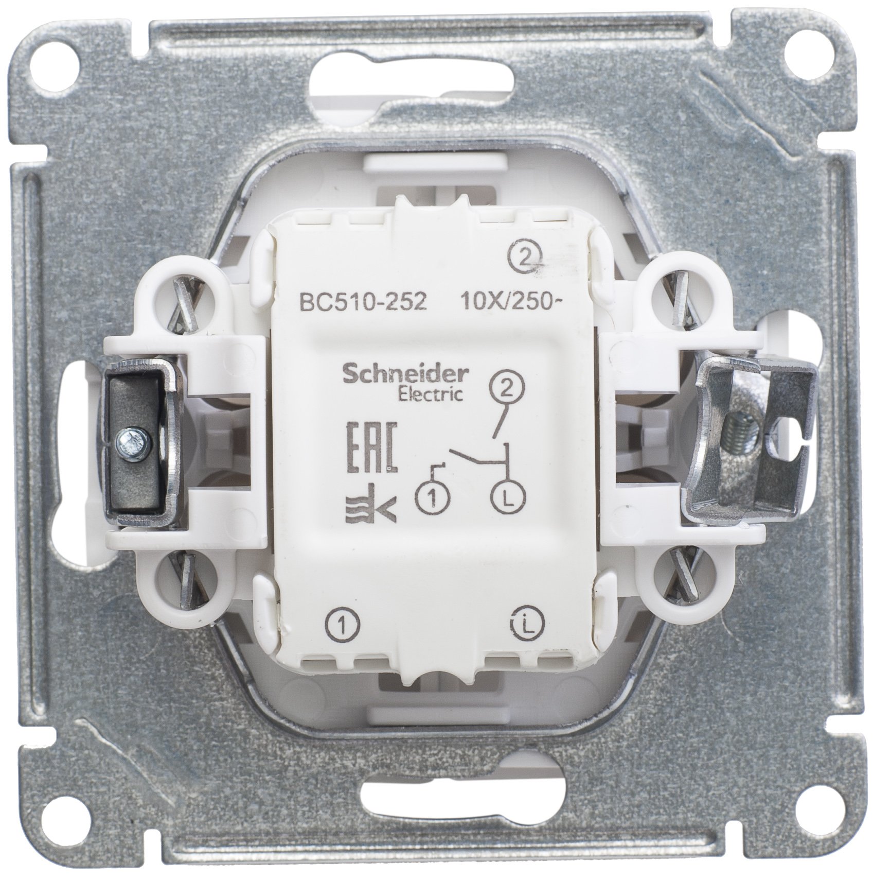 Механизм Schneider Electric W59 (цвет шампань) выключателя 2-клавишного подходит для сетей 250 В, на ток до 10 А.