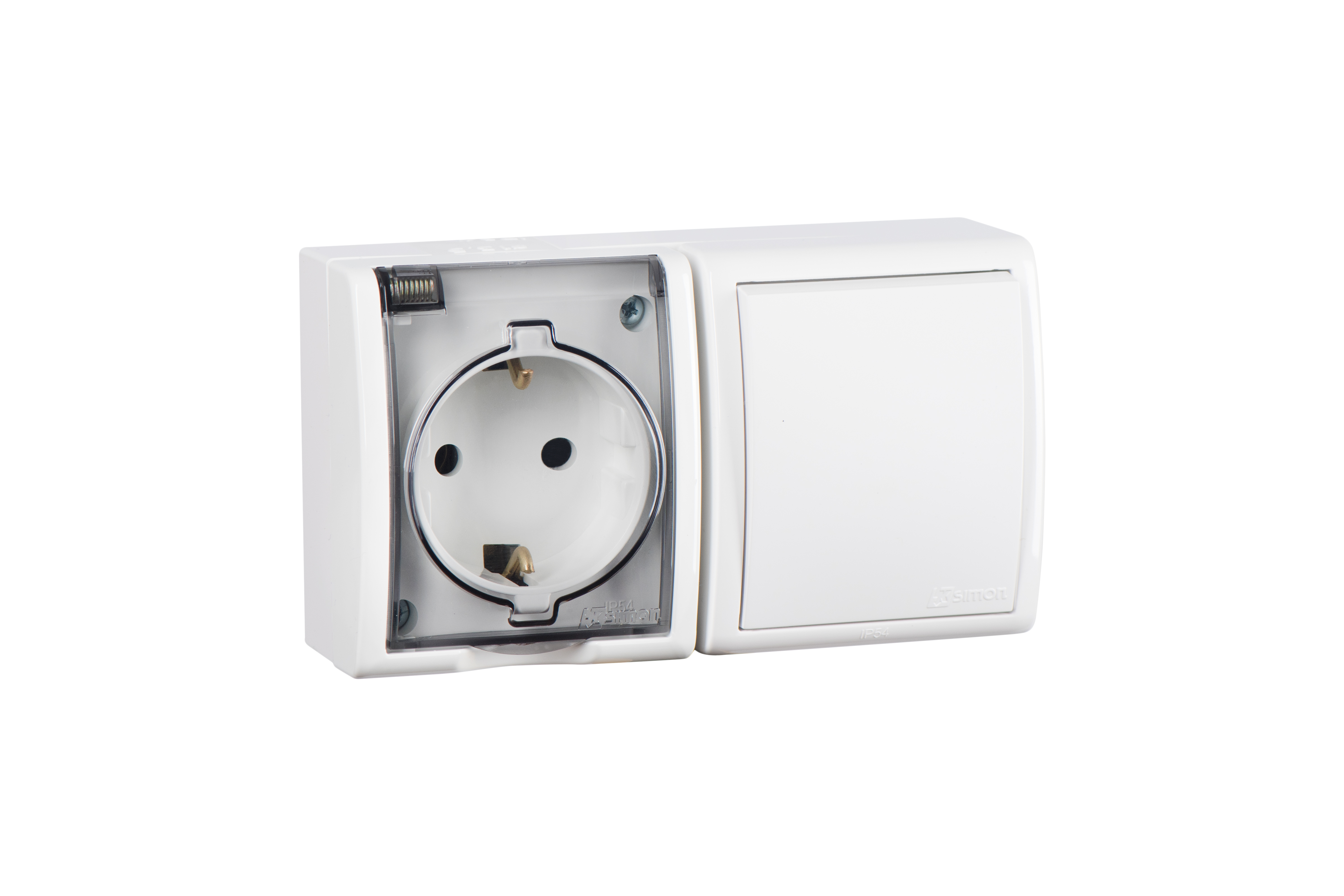Simon 15 Aqua Белый Блок: Розетка 2P+E Schuko 16А 250В + выключатель 10А 250В, IP54 от производителя Simon. Артикул производителя 1594511-030.