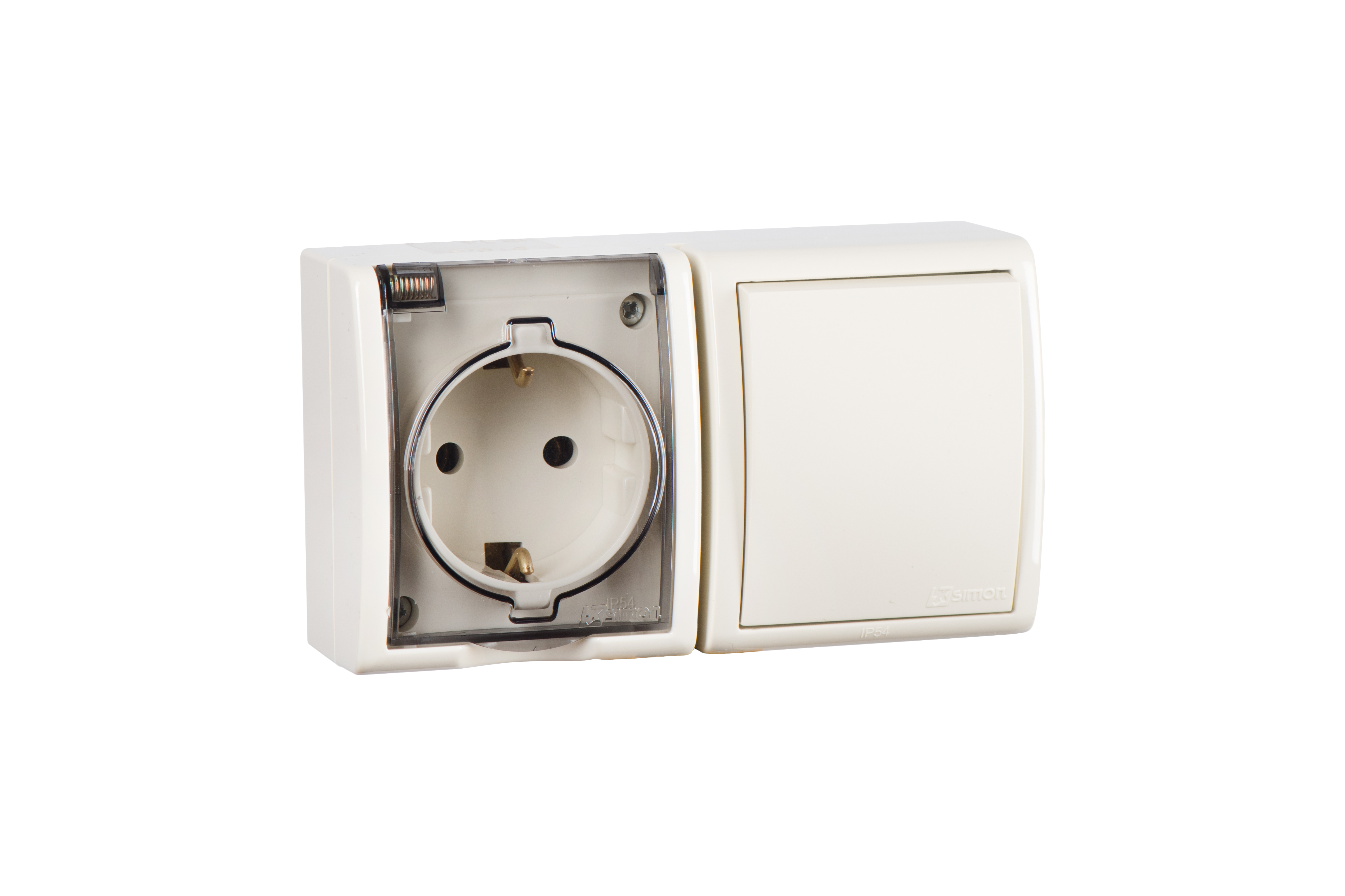 Simon 15 Aqua Бежевый Блок: Розетка 2P+E Schuko 16А 250В + выключатель 10А 250В, IP54 от производителя Simon. Артикул производителя 1594511-031.