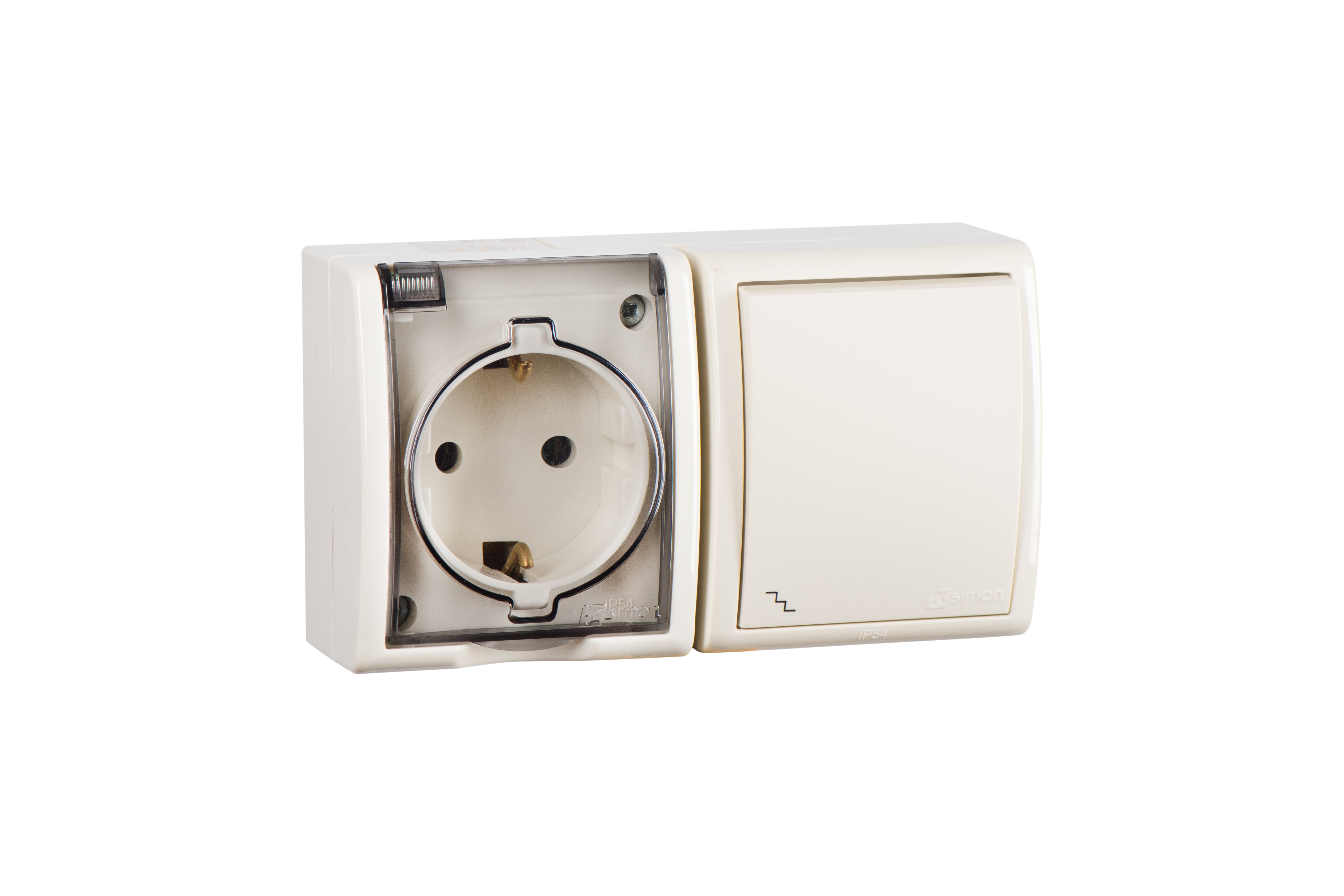 Simon 15 Aqua Бежевый Блок: Розетка 2P+E Schuko 16А 250В + выключатель проход.10А 250В, IP54 от производителя Simon. Артикул производителя 1594516-031.