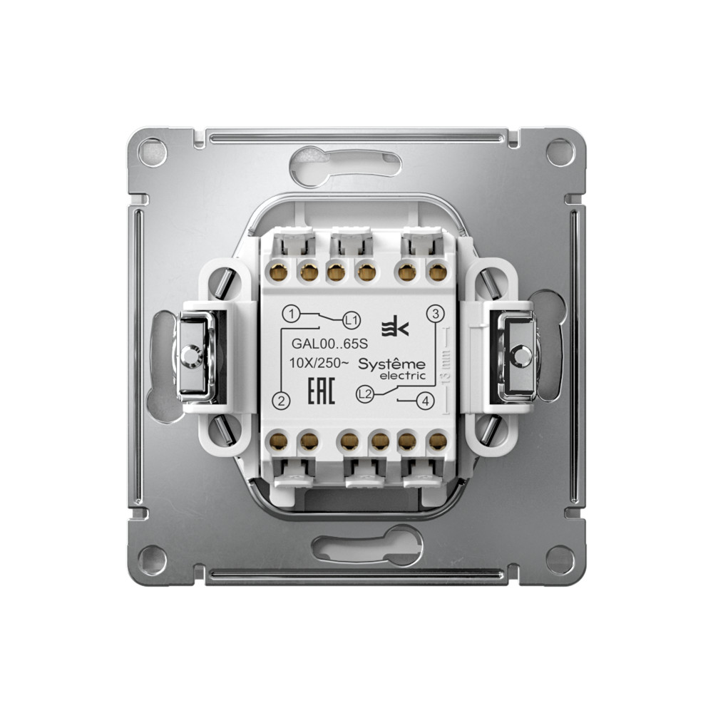 Механизм с быстрозажимными клеммами Systeme Electric серии ArtGallery в цвете алюминий переключателя 2-клавишного подходит для сетей 250 В, на ток 10 А. С помощью новых быстрозажимных клемм монтаж стал быстрее. Для подключения не требуется отвертка. Классическое цветовое решение станет изюминкой любого интерьера. Лицевые детали из качественного ABS-пластика, устойчивого к царапинам и УФ-излучению. Лучший промышленный дизайн (по итогам премии МИНПРОМТОРГ 2023).